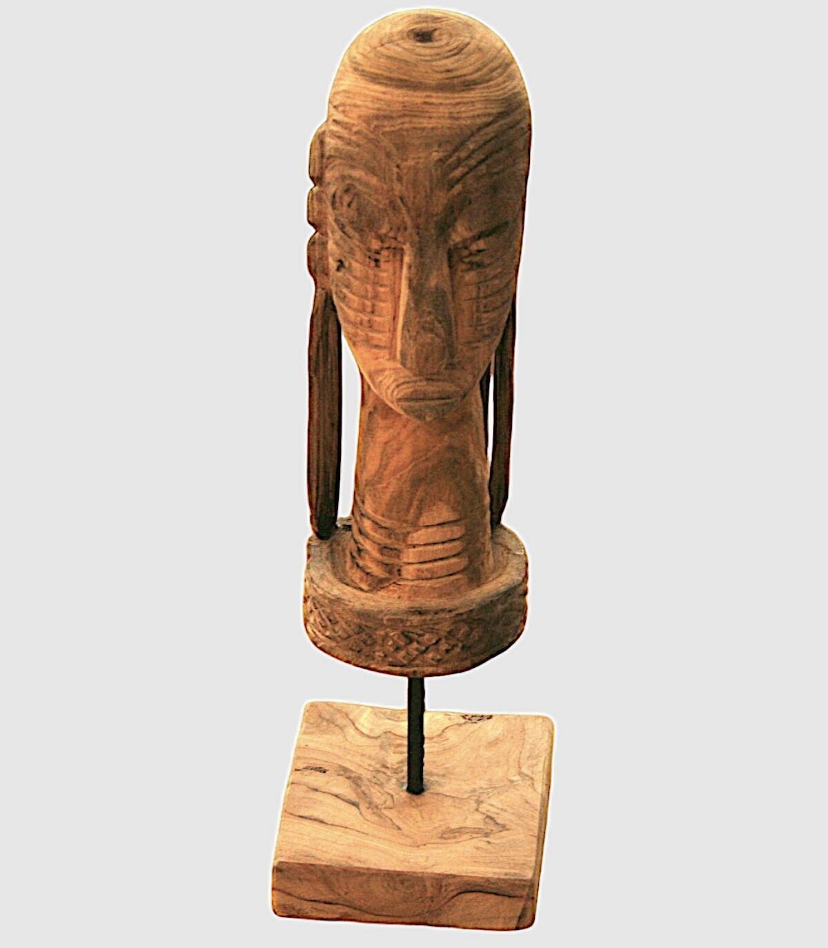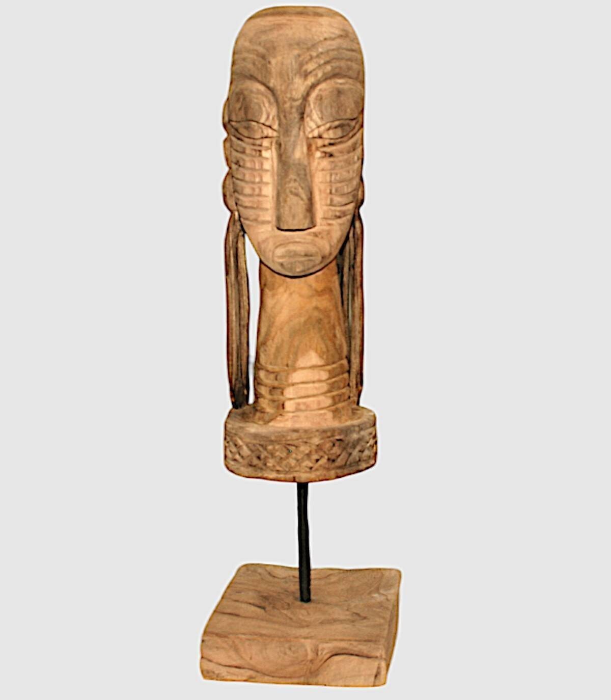 Handgemaakt decoratief houten beeld. Dit handgemaakte houten beeld is een uniek en aantrekkelijk stuk dat een vleugje elegantie aan elke ruimte zal toevoegen. Dit beeldhouwwerk, met de hand gesneden en voorzien van ingewikkelde details, geeft de essentie van traditioneel vakmanschap weer. Het abstracte maar boeiende ontwerp nodigt uit tot contemplatie en reflectie. Met zijn imposante hoogte wordt dit stuk een brandpunt dat de aandacht trekt. Of het nu in een gezellig hoekje of in een grotere ruimte is, dit houten beeld geeft karakter en een mystieke sfeer aan uw decoratie. Geniet van de tijdloze schoonheid van dit handgemaakte kunstwerk. Omdat we handgemaakt zijn, begrijpen we variaties in toon, grootte en vorm of bepaalde onvolkomenheden (scheuren, knopen, markeringen) als een toegevoegde waarde die het tot een uniek stuk maakt.