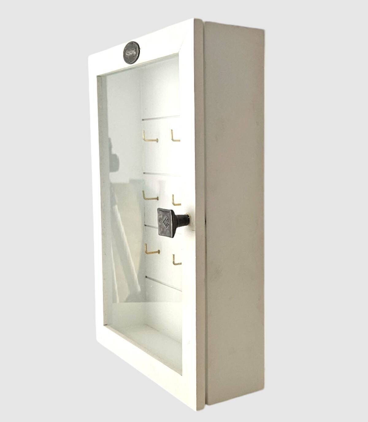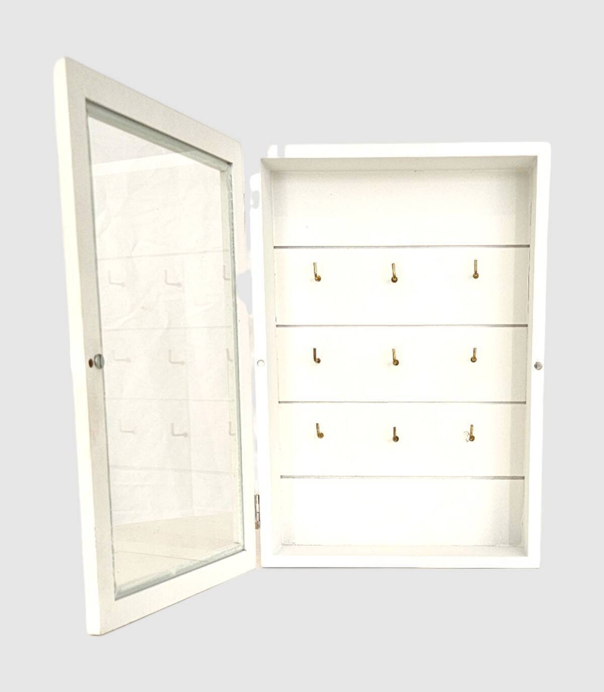 Read moreShow lessDit houten sleutelkastje is een praktische en stijlvolle oplossing voor het veilig ordenen en opbergen van sleutels. Dankzij het compacte ontwerp en de glazen deur kunt u uw sleutels in het zicht houden, maar beschermd tegen stof en vocht. Het interieur is voorzien van verschillende haken om sleutels op een ordelijke manier op te hangen. Met deze kast, die perfect is voor thuis, op kantoor of in een hotel, kunt u snel de sleutel vinden die u nodig heeft. Het is gemaakt van duurzame materialen en is een duurzame investering om uw sleutels georganiseerd en toegankelijk te houden.