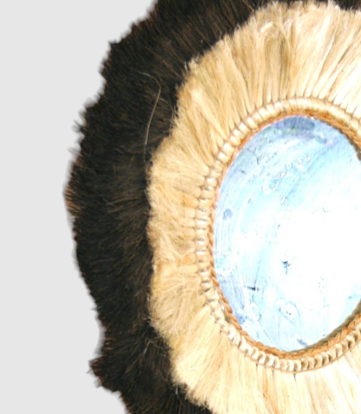 Espejo con flecos naturales dos colores pequeño