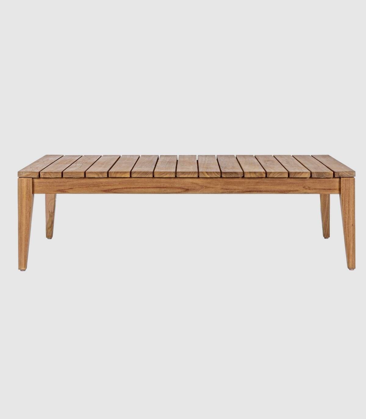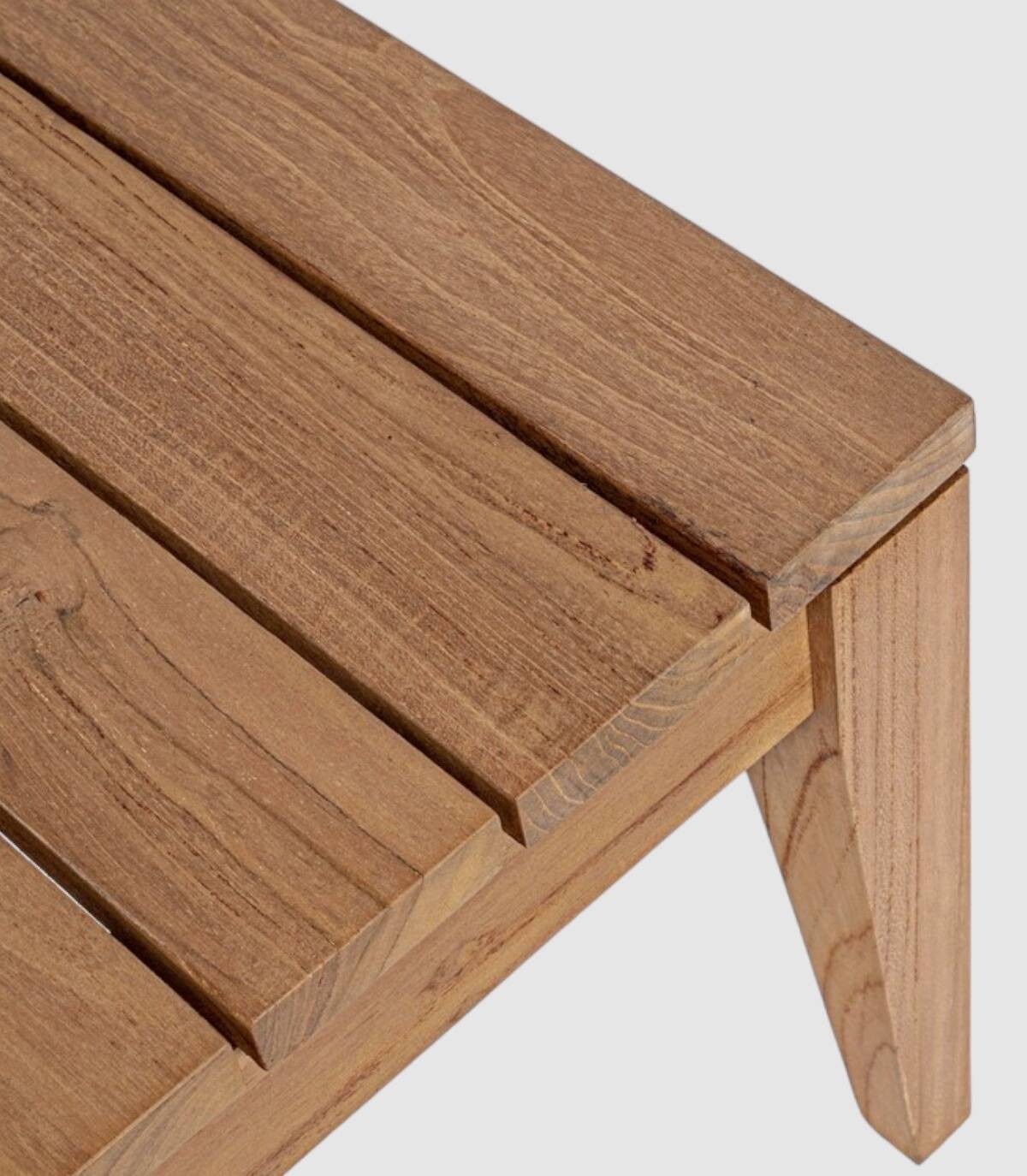 De Keilani salontafel heeft een teakhouten structuur - svlk (gecertificeerd hout uit duurzame bossen). Vernis en eindbescherming (anti UV) akzonobel. Poten om te monteren. Bord met perforaties in lamelstijl.