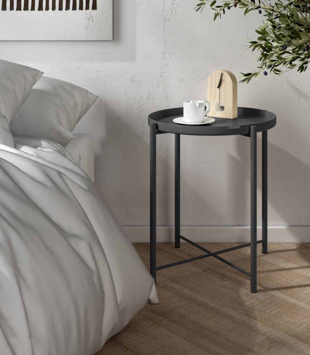 De ronde Antarctische salontafel, Met een elegant en modern ontwerp, heeft het een metalen blad en structuur met een afwerking in dezelfde kleur.