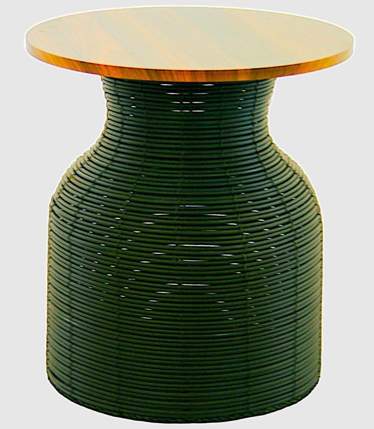Zwarte rotan tafel met groot houten blad, Deze elegante zwarte salontafel met natuurlijk houten blad is een veelzijdig en aantrekkelijk meubelstuk voor elke woonkamer. Gemaakt van hoogwaardig geweven rotan, combineert het perfect de schoonheid van plantaardige vezels met de stevigheid van hout. Het eenvoudige maar verfijnde ontwerp past zich aan een breed scala aan decoratieve stijlen aan, van rustiek tot modern. De tafel is ongeveer 45 cm hoog en 40 cm in diameter en biedt voldoende ruimte voor het plaatsen van tijdschriften, boeken, drankjes of andere decoratieve accessoires. Naast zijn esthetische aantrekkingskracht is deze salontafel ongelooflijk duurzaam en gemakkelijk schoon te maken, waardoor hij een praktische investering voor je huis is. Of je hem nu als middelpunt of als bijzettafel gebruikt, deze zwarte tafel met natuurlijk houten blad voegt een vleugje elegantie en warmte toe aan je woonruimte.