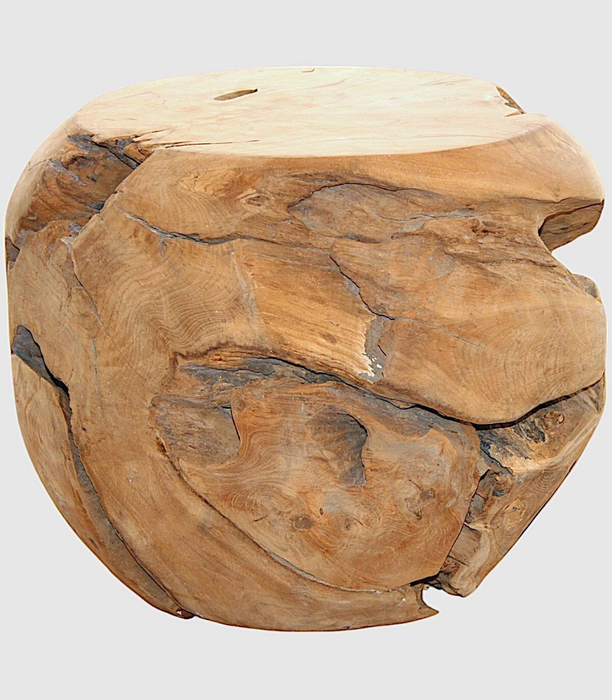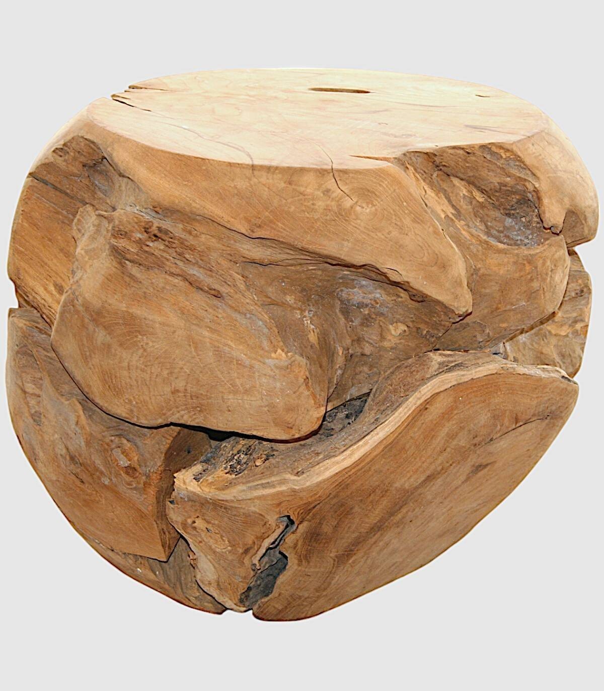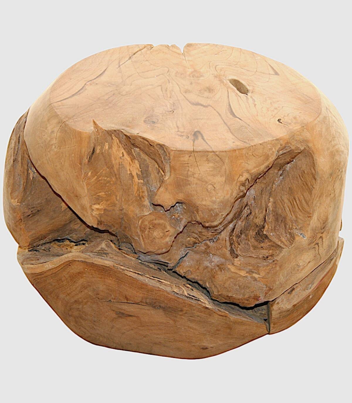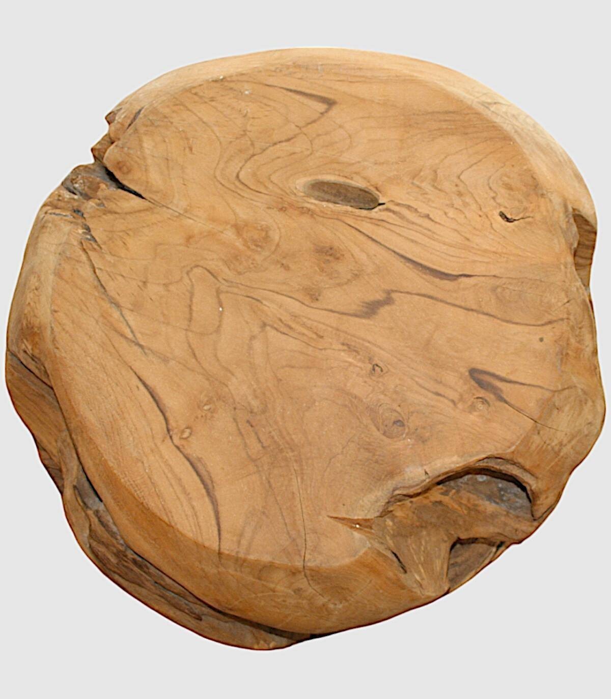 Deze ronde massief houten tafel is een uniek en aantrekkelijk stuk dat een rustieke en natuurlijke toets aan elke ruimte zal toevoegen. Elk exemplaar is een met de hand gesneden kunstwerk, waarin de ingewikkelde patronen en korrels worden weergegeven die de natuur heeft gecreëerd. Scheuren, knopen en kleurvariaties zijn inherente kenmerken die de organische schoonheid ervan versterken. Deze tafel is perfect als salontafel, bijzettafel of zelfs als onderstel voor een vaas of beeldhouwwerk. Na verloop van tijd zal het een mooie patina ontwikkelen, waardoor het er nog aantrekkelijker uit zal zien. Het meet ongeveer 50 cm in diameter en 40 cm hoog. Hij weegt ongeveer 40 kg en is dus stevig en stabiel. Omdat we handgemaakt zijn, begrijpen we variaties in toon, grootte en vorm of bepaalde onvolkomenheden (scheuren, knopen, vlekken) als een toegevoegde waarde die het tot een uniek stuk maakt.