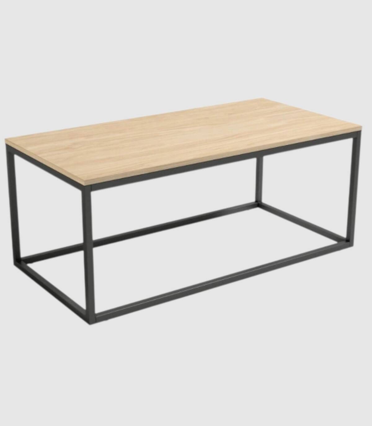 Read moreShow lessHet bestaat uit een met melamine afgewerkt bord op een zwart gelakte metalen structuur met een kubusvormig ontwerp van vier samengevoegde poten.