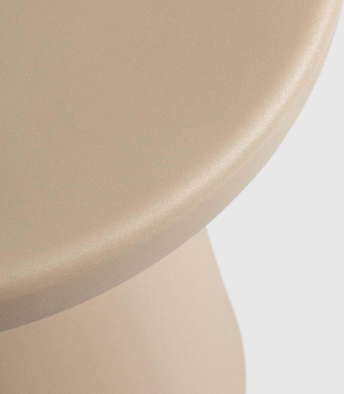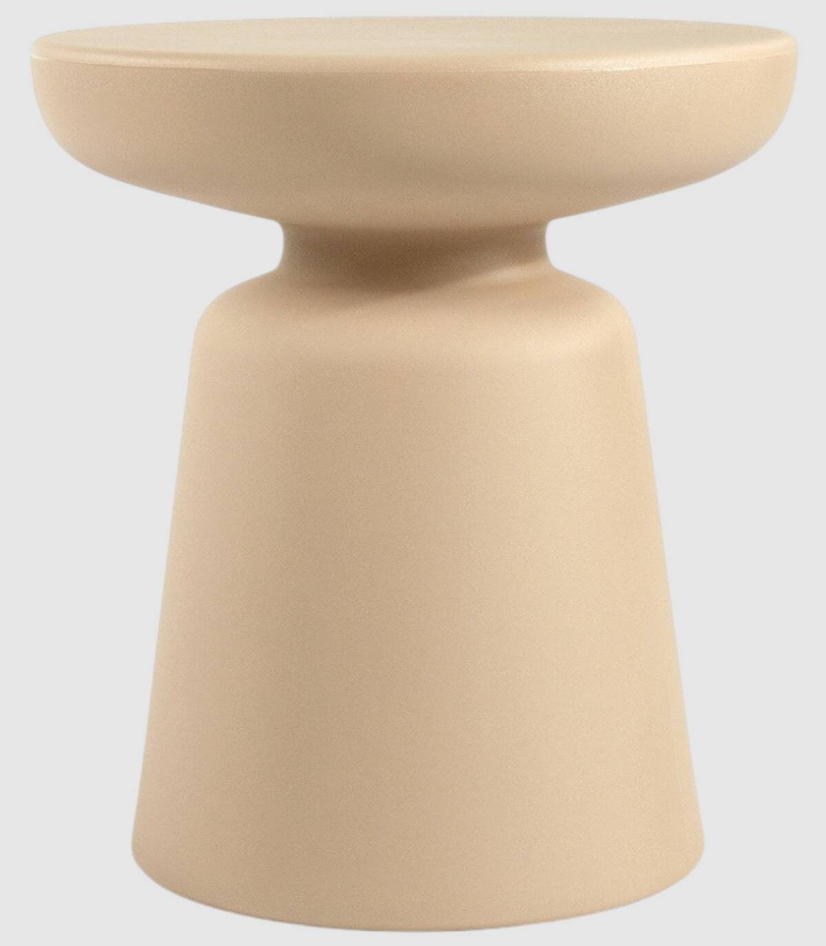 La mesa de centro Borneo redonda de exterior se compone de una pieza de polipropileno con estilo de puntos estilo piedra de color arena.