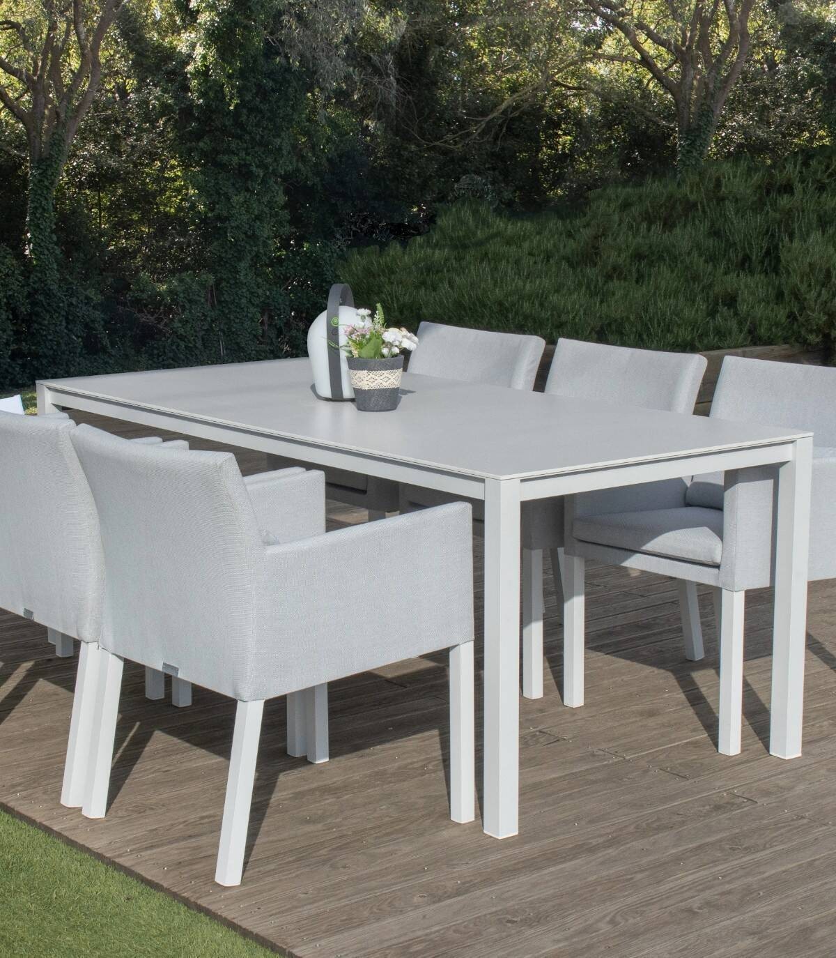 De rechthoekige aluminium eettafel Duna Het is gemaakt van gepoedercoat aluminium (polyester). Het heeft een glad rechthoekig aluminium oppervlak. Alle 4 poten hebben antislip doppen.