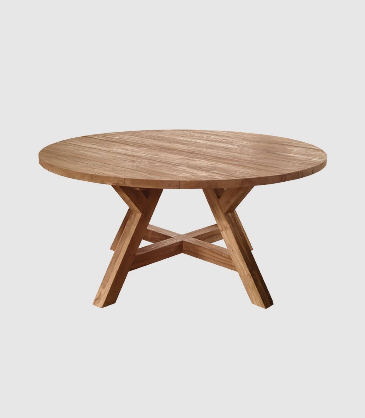 De Kenia eettafel het heeft een glad rond oppervlak en poten van gerecycled teakhout.