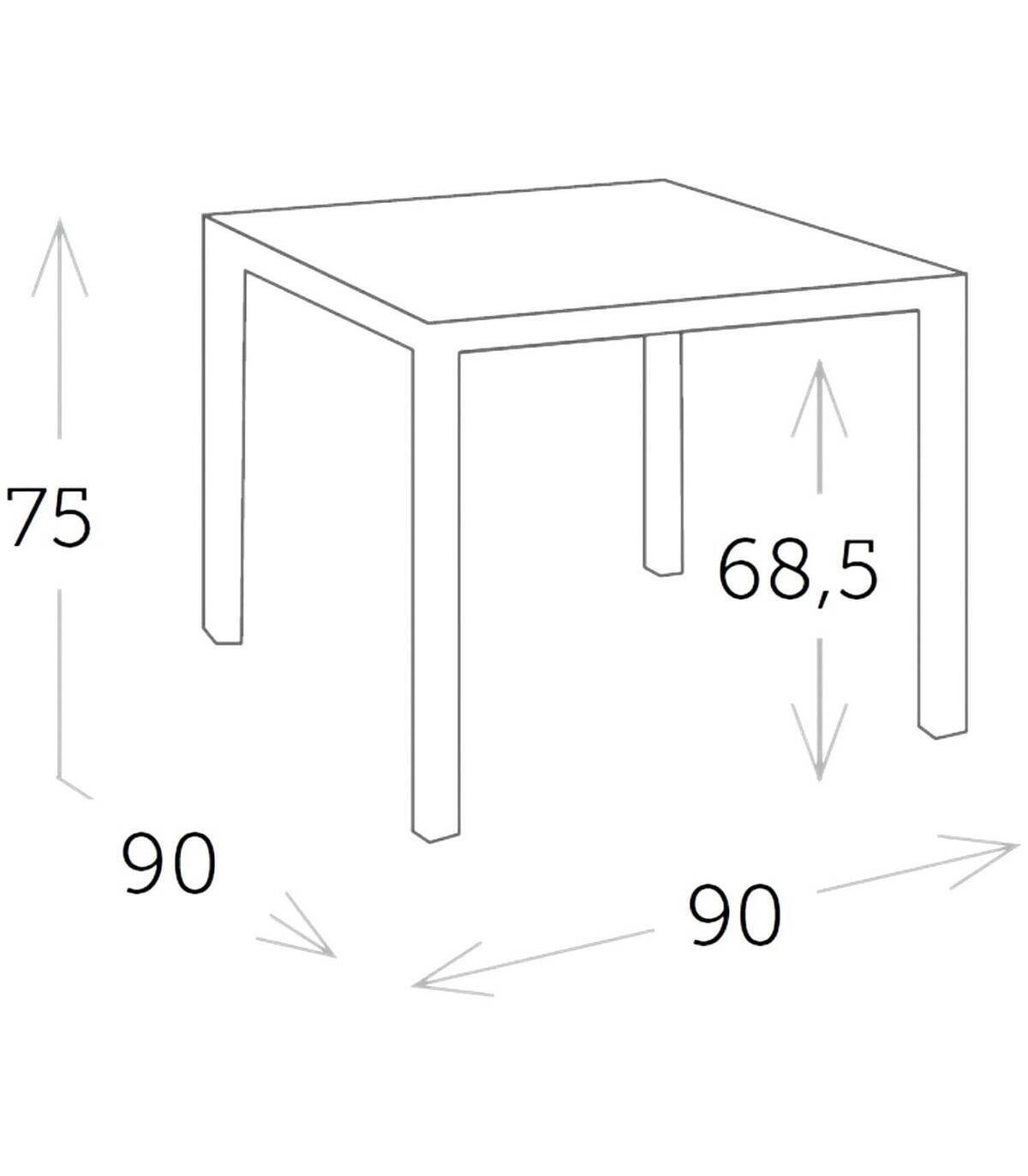 De eettafel A Het is gemaakt van gepoedercoat aluminium (polyester). Het heeft een glad rechthoekig glasoppervlak. Alle 4 poten hebben antislip doppen.