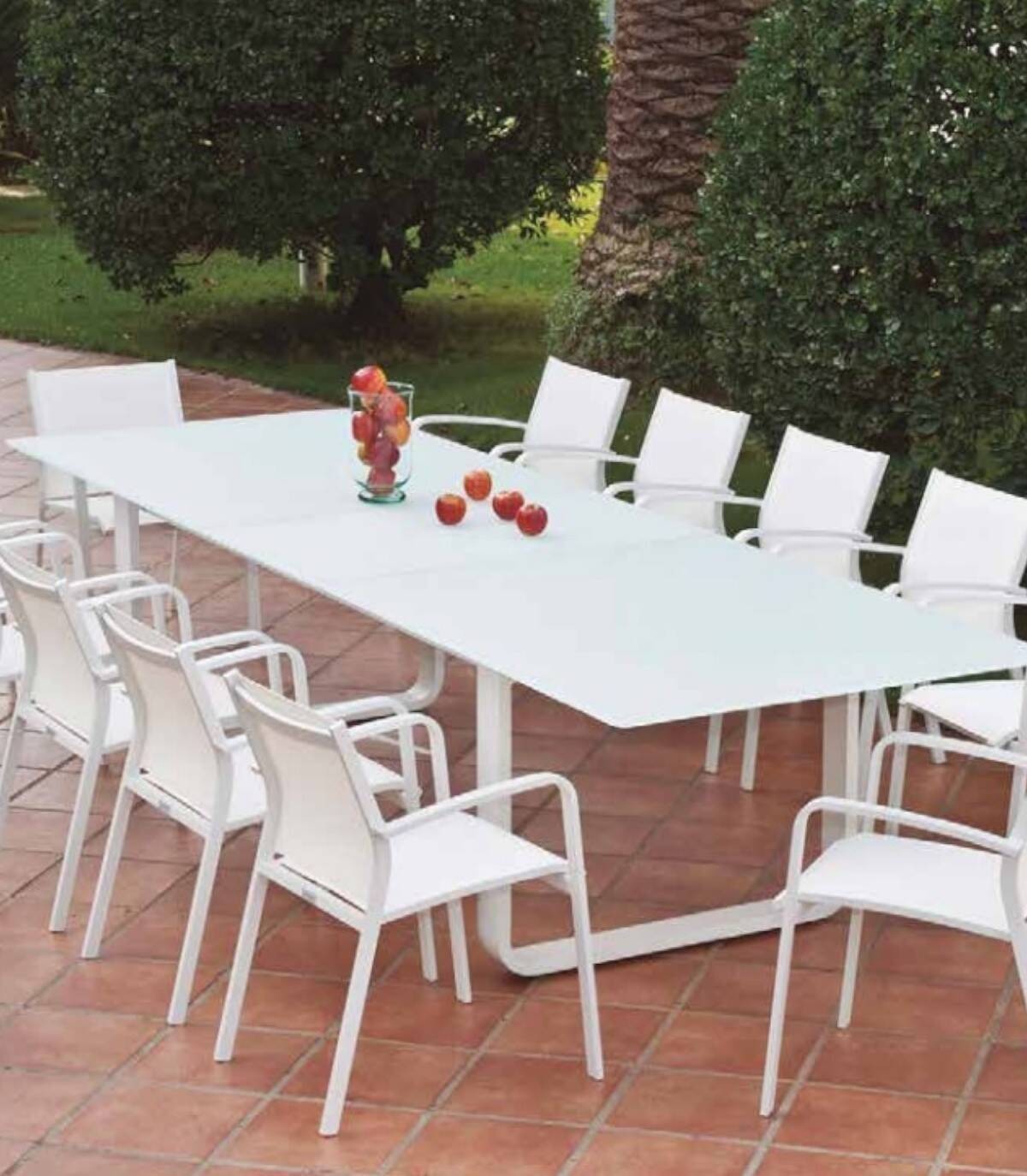 Verona aluminium uitschuifbare tafel Het is gemaakt van gepoedercoat aluminium (polyester). Het heeft een glad rechthoekig glasoppervlak. Alle 4 poten hebben antislip doppen.