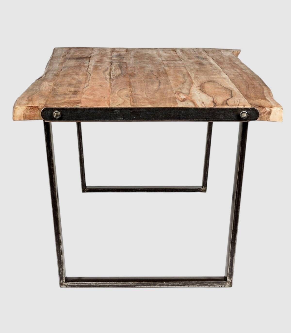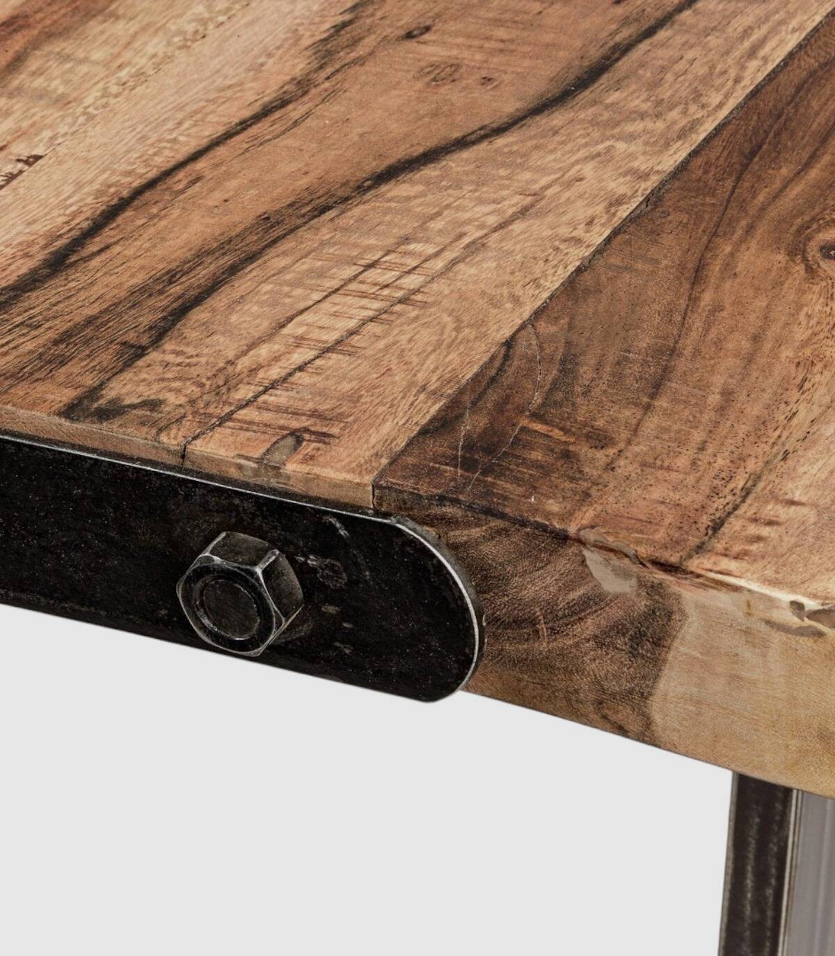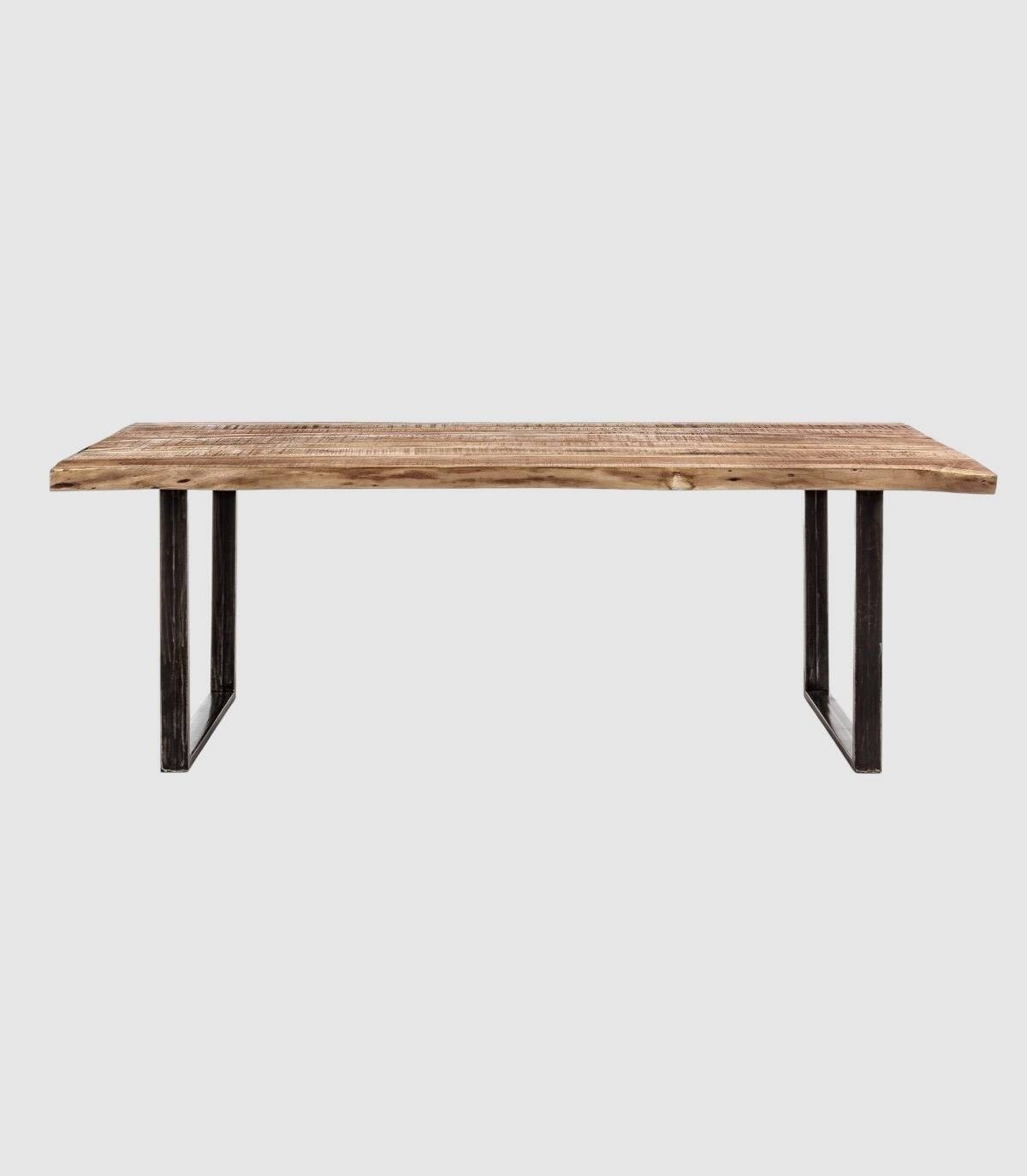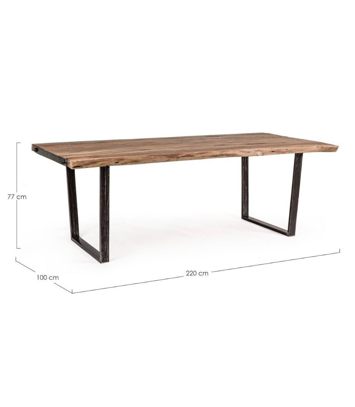 Elmer tafel 220x100: Elegante tafel met stalen poten Epoxy gepoedercoat bedekt met acaciahout. Beschermende acrylafwerking. Omdat het blad met de hand wordt bewerkt, zijn de door het hout gevormde vormen en maten slechts indicatief, alle artikelen zullen van elkaar verschillen. Te monteren.