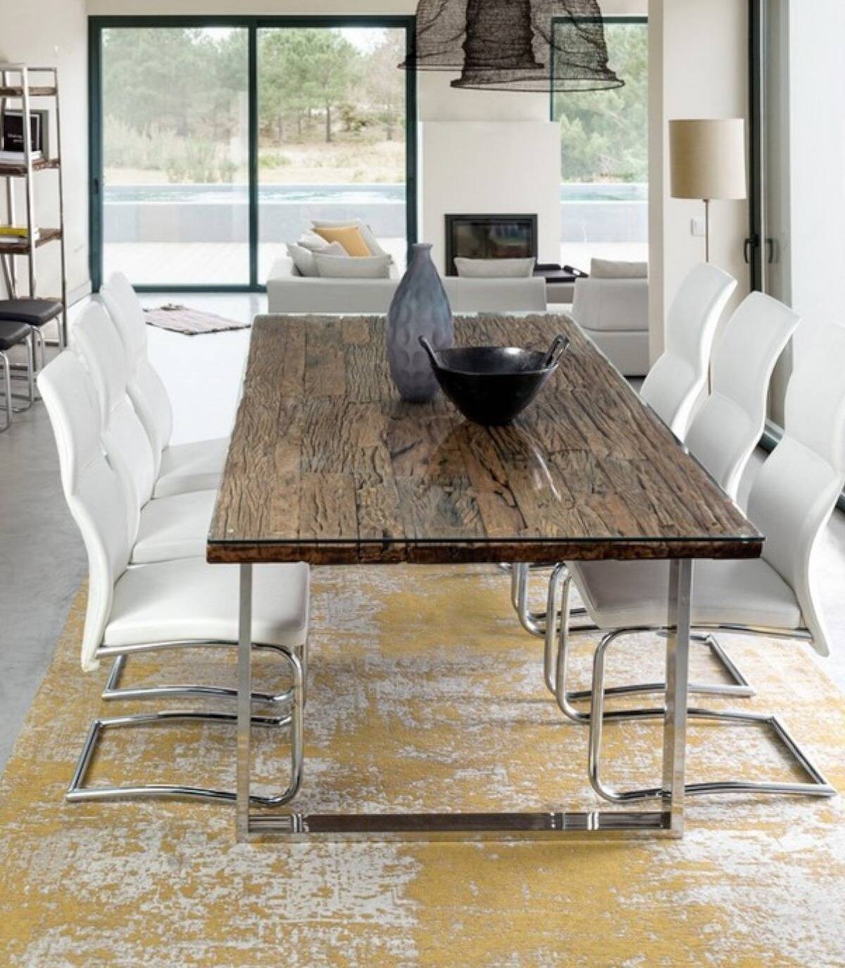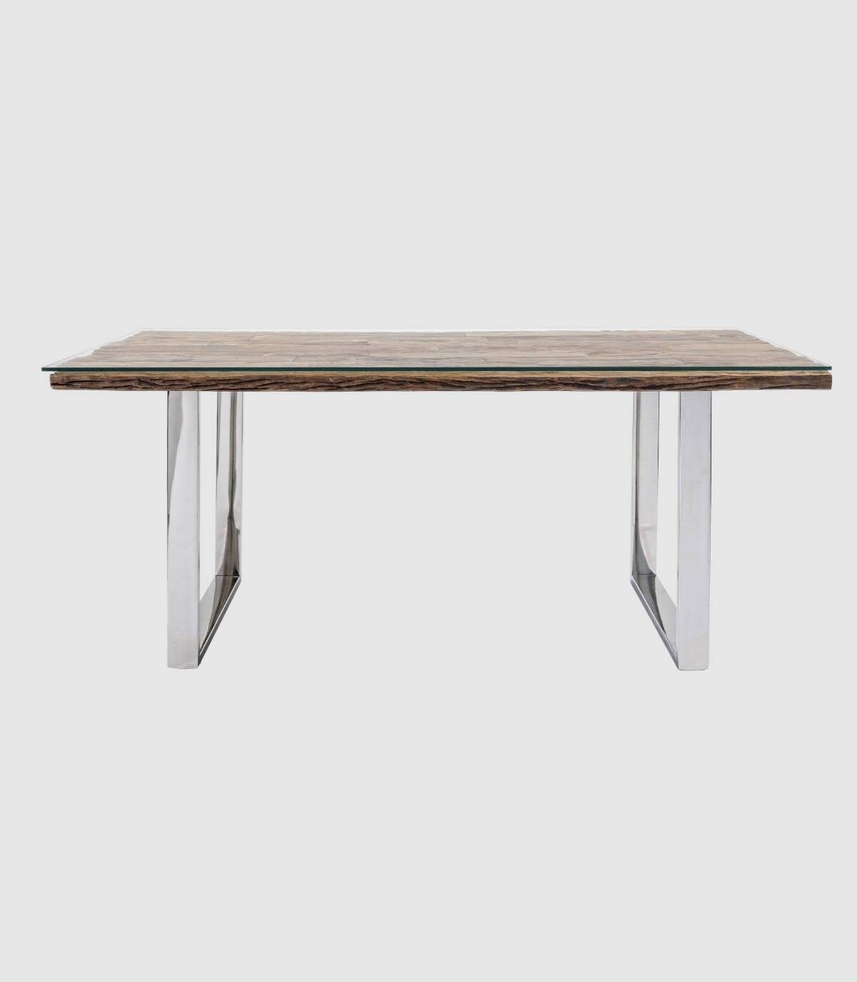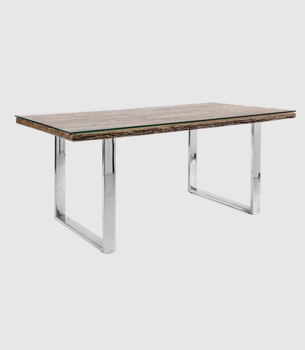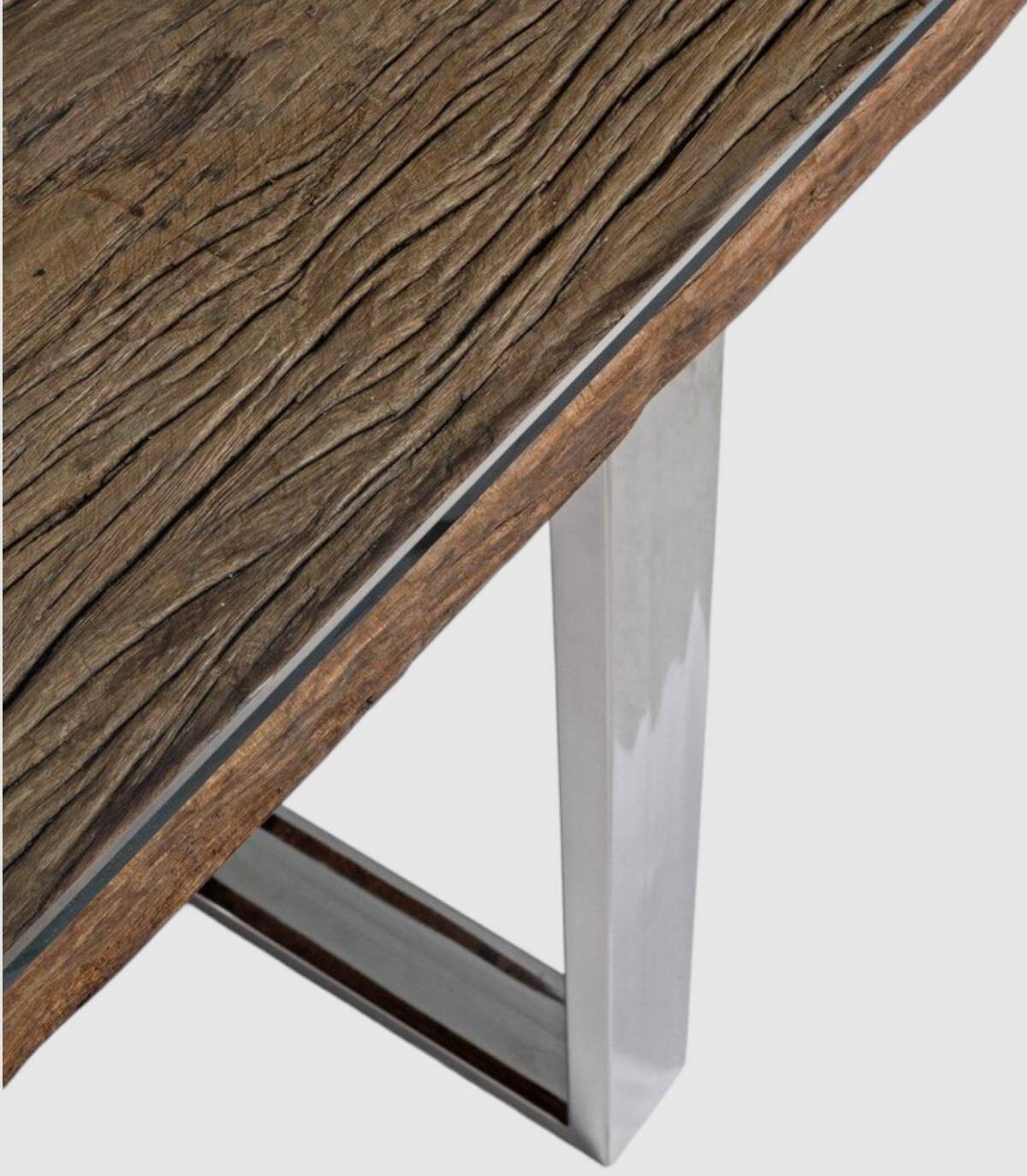 - Structuur: Gerecycled houten blad. Natuurlijke afwerking. GEHARD GLAS. Roestvrij stalen poten.