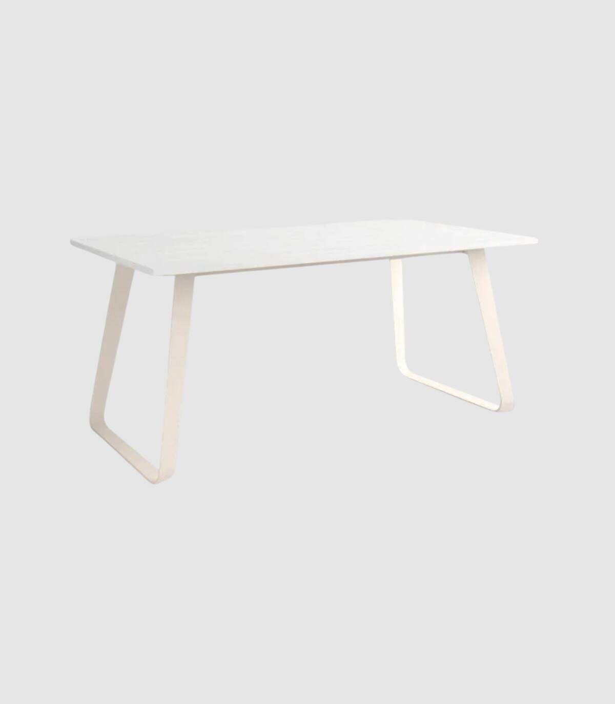 Read moreShow lessHet bestaat uit een ivoorkleurige structuur en poten met een wit melamine blad.