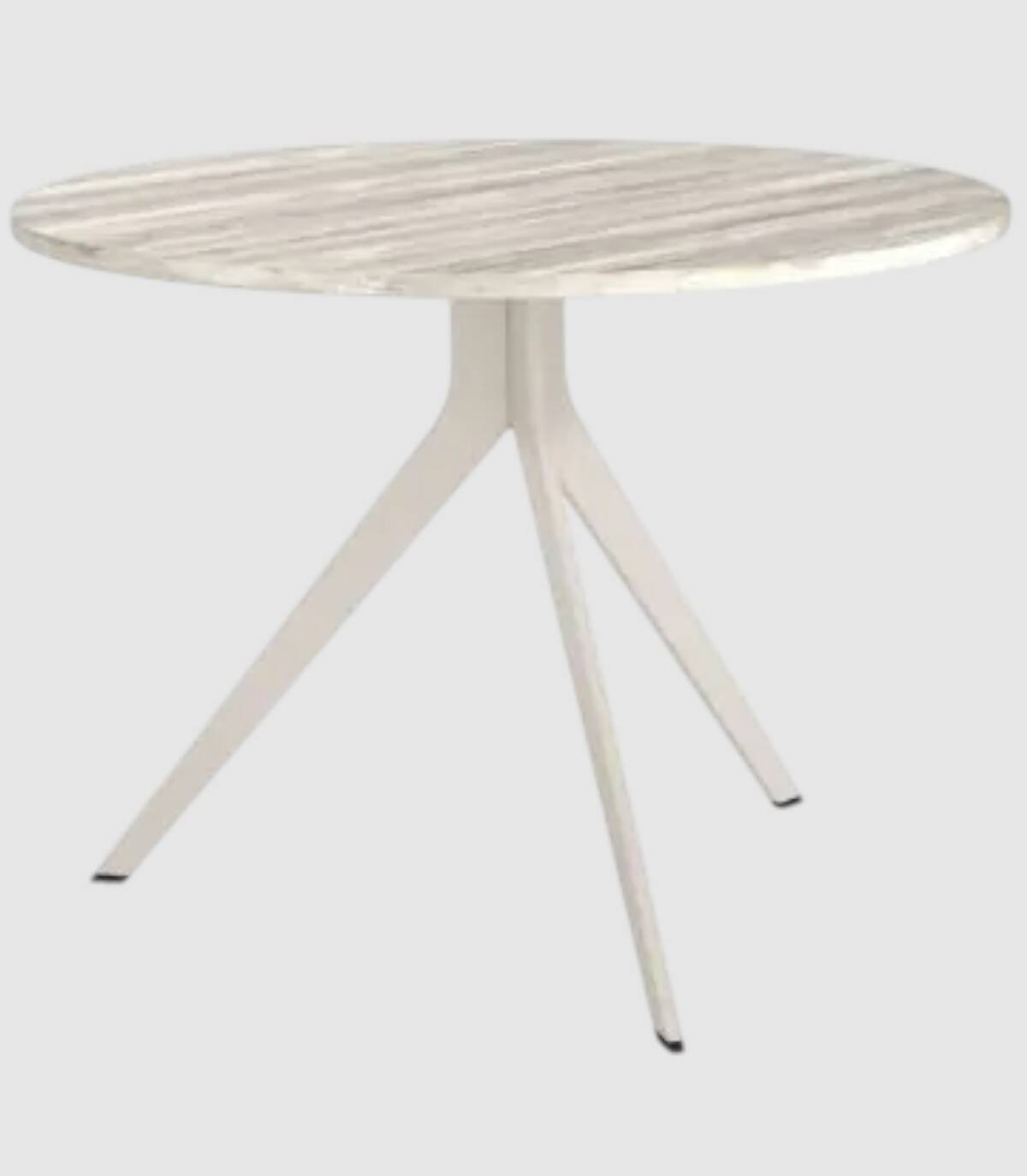 Read moreShow lessHet bestaat uit een met melamine afgewerkt bord op een ivoorkleurige metalen structuur, met een ontwerp met drie poten.