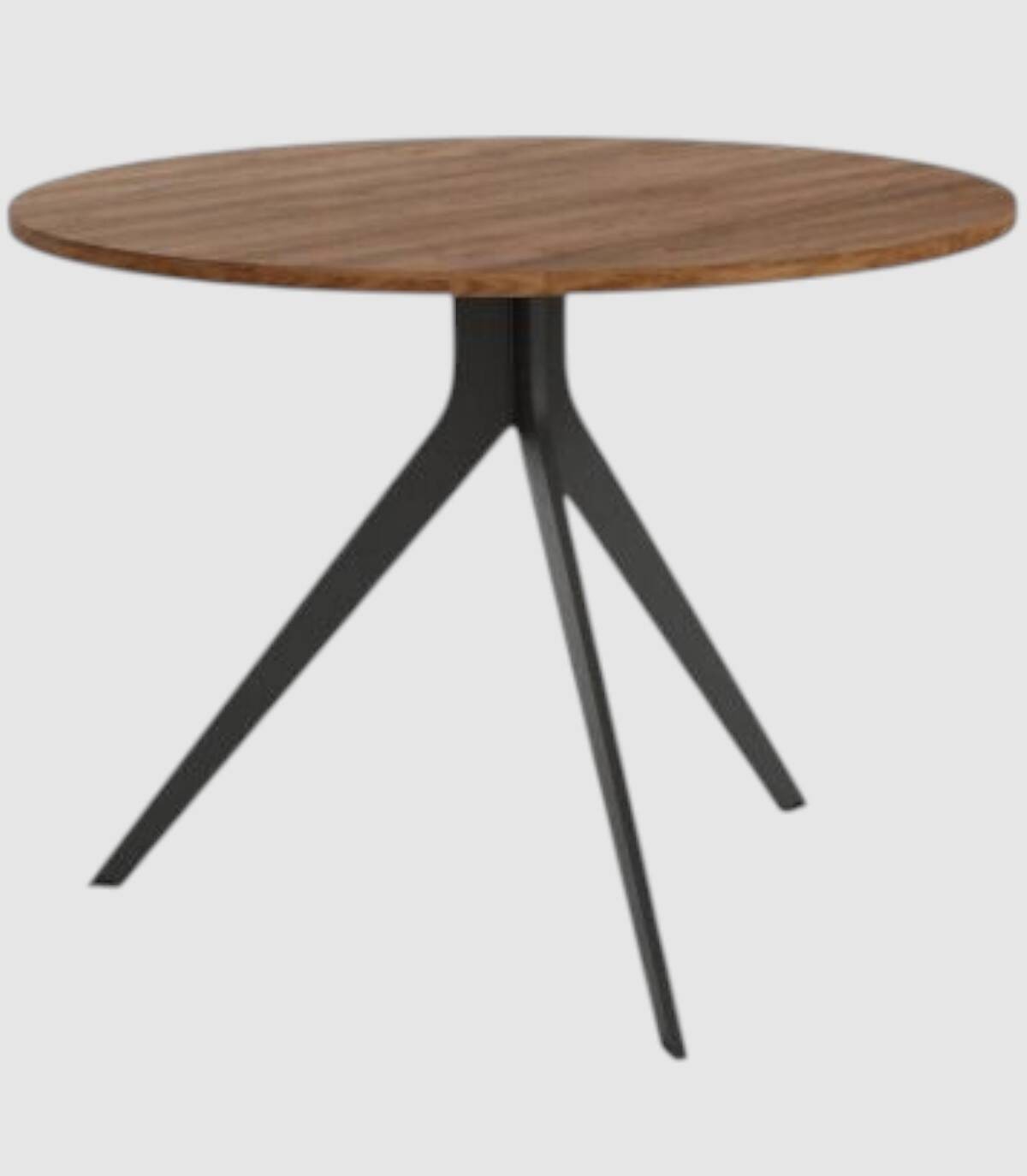 Read moreShow lessHet bestaat uit een bord met een melamine-afwerking op een zwart gelakte metalen structuur, met een ontwerp met drie poten.