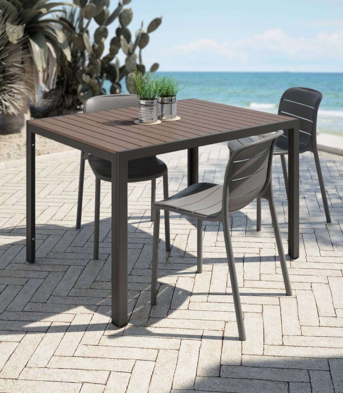 Read moreShow lessHet bestaat uit een WPC-lattenplank met houteffect op een metalen structuur met vier poten die in grafietkleur zijn geverfd.