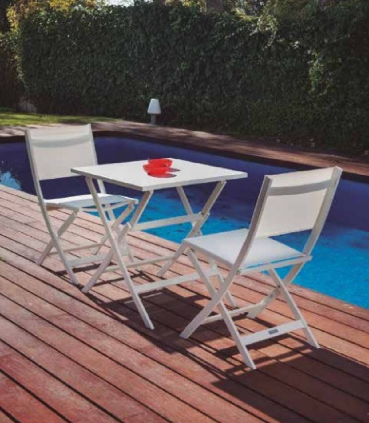 De Volga klaptafel Het is gemaakt van gepoedercoat aluminium (polyester). Het heeft een glad rechthoekig aluminium oppervlak. Alle 4 poten hebben antislip doppen.