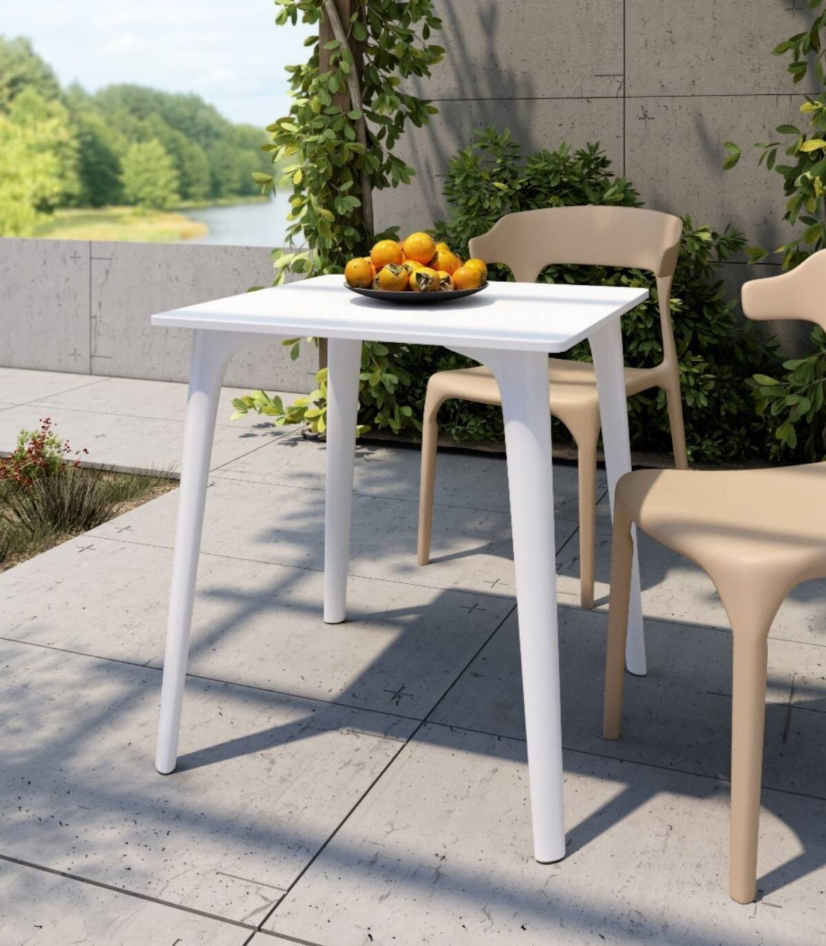 De vierkante Kara-tafel, Elegant en modern ontwerp, met een blad van polypropyleen en poten in dezelfde kleur.