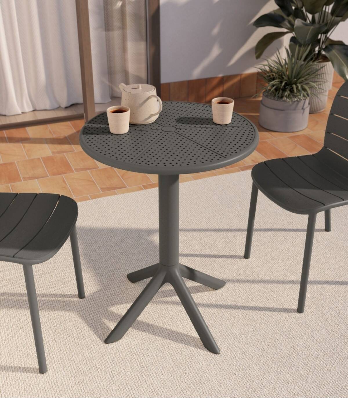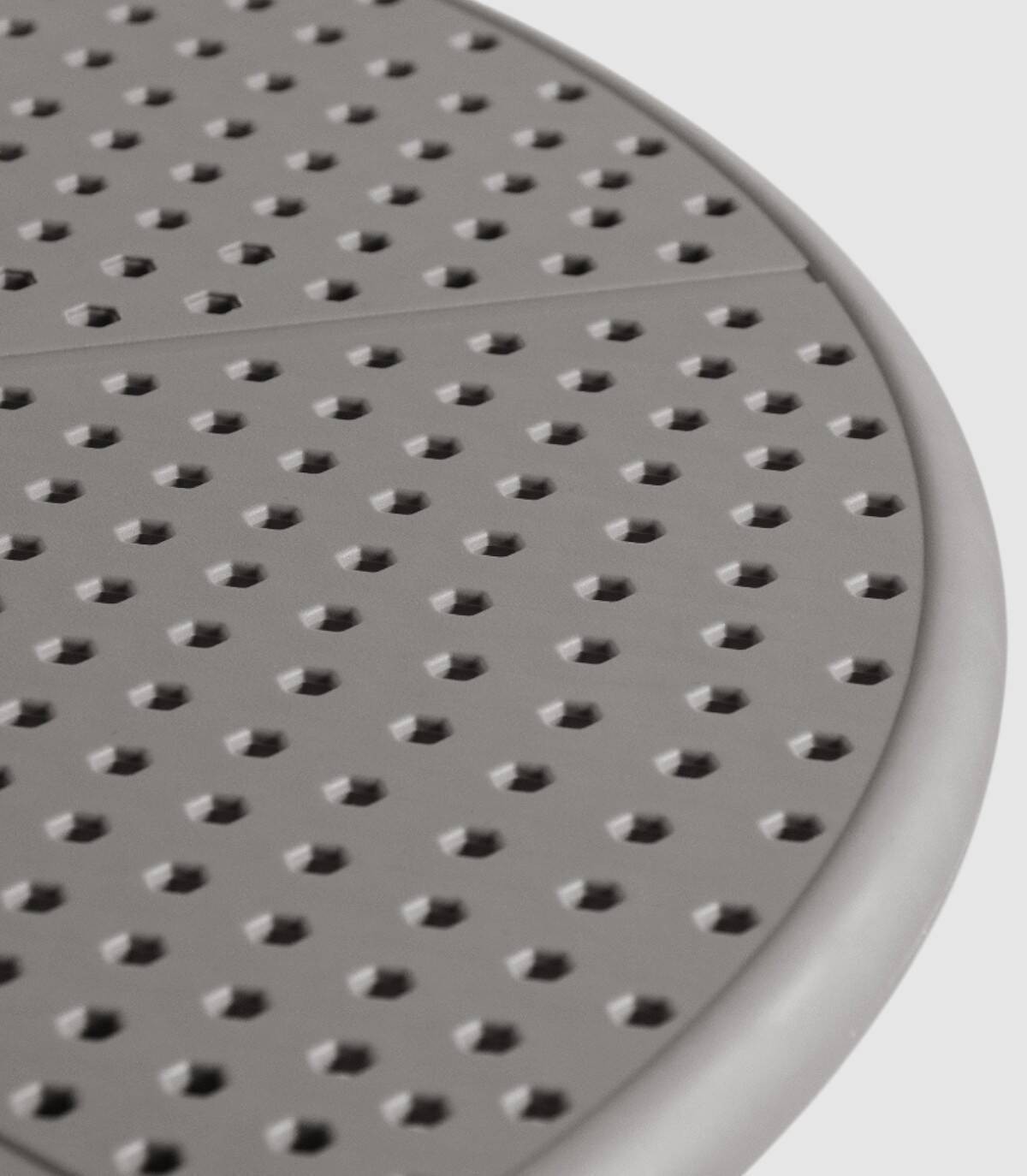 Read moreShow lessHet bestaat uit een bord van polypropyleen met perforaties op een structuur van polypropyleen met vier poten met een centrale kolom.