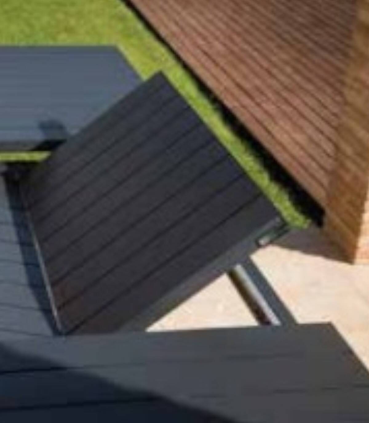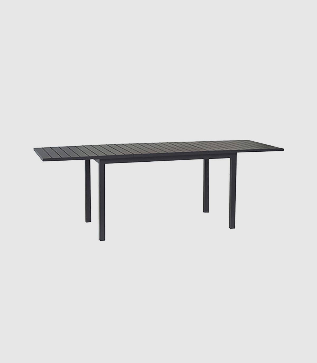 De uitschuifbare aluminium eettafel Auto Het is gemaakt van gepoedercoat aluminium (polyester). Het heeft een glad rechthoekig aluminium oppervlak. Alle 4 poten hebben antislip doppen.