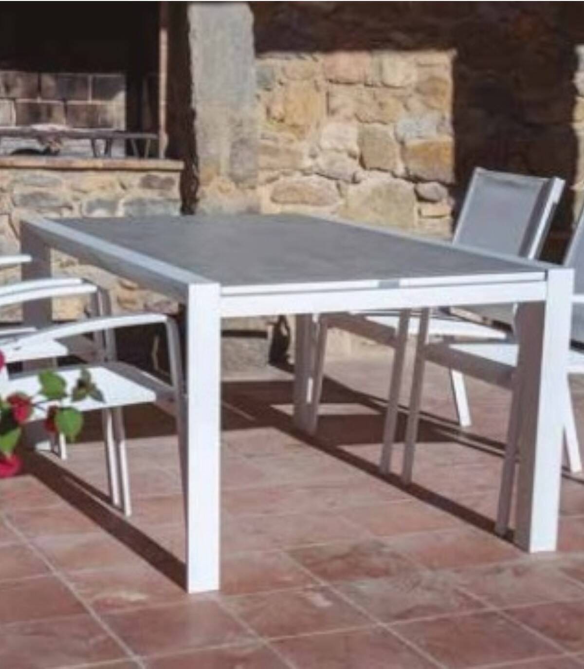 De Slide aluminium uitschuifbare tafel Het is gemaakt van gepoedercoat aluminium (polyester). Het heeft een glad rechthoekig aluminium oppervlak. Alle 4 poten hebben antislip doppen.