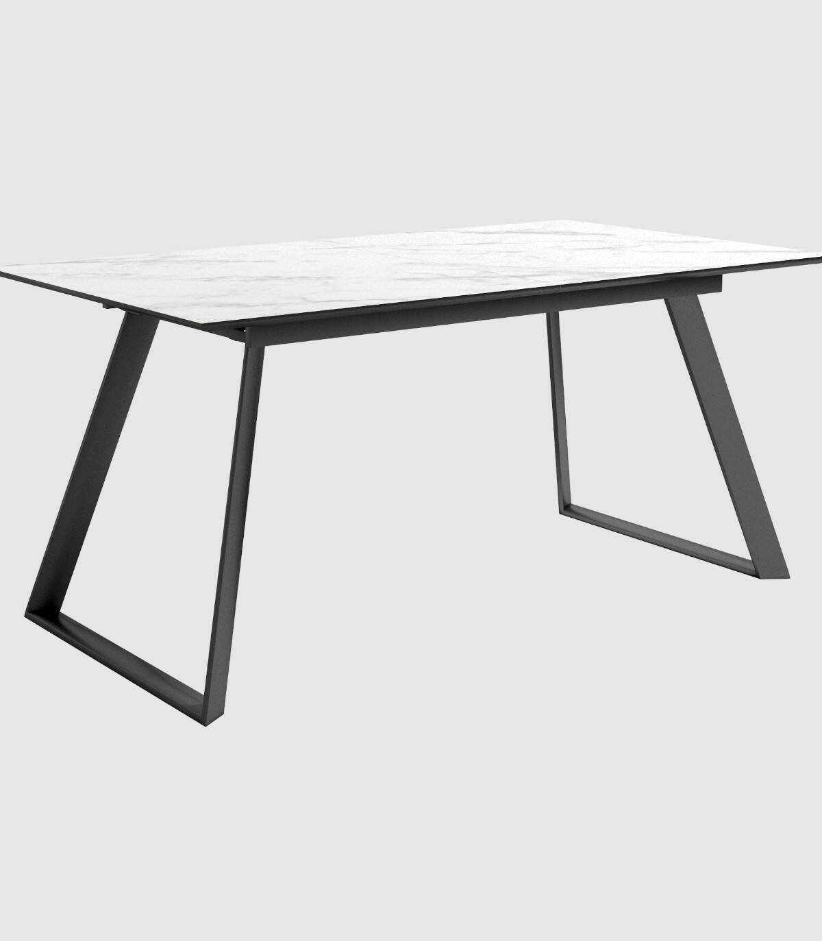 De rechthoekige Timor tafel met verlengstuk, Het elegante en moderne ontwerp heeft een afgeschuinde bovenkant met een steenachtige afwerking en een zwart gelakte metalen structuur.