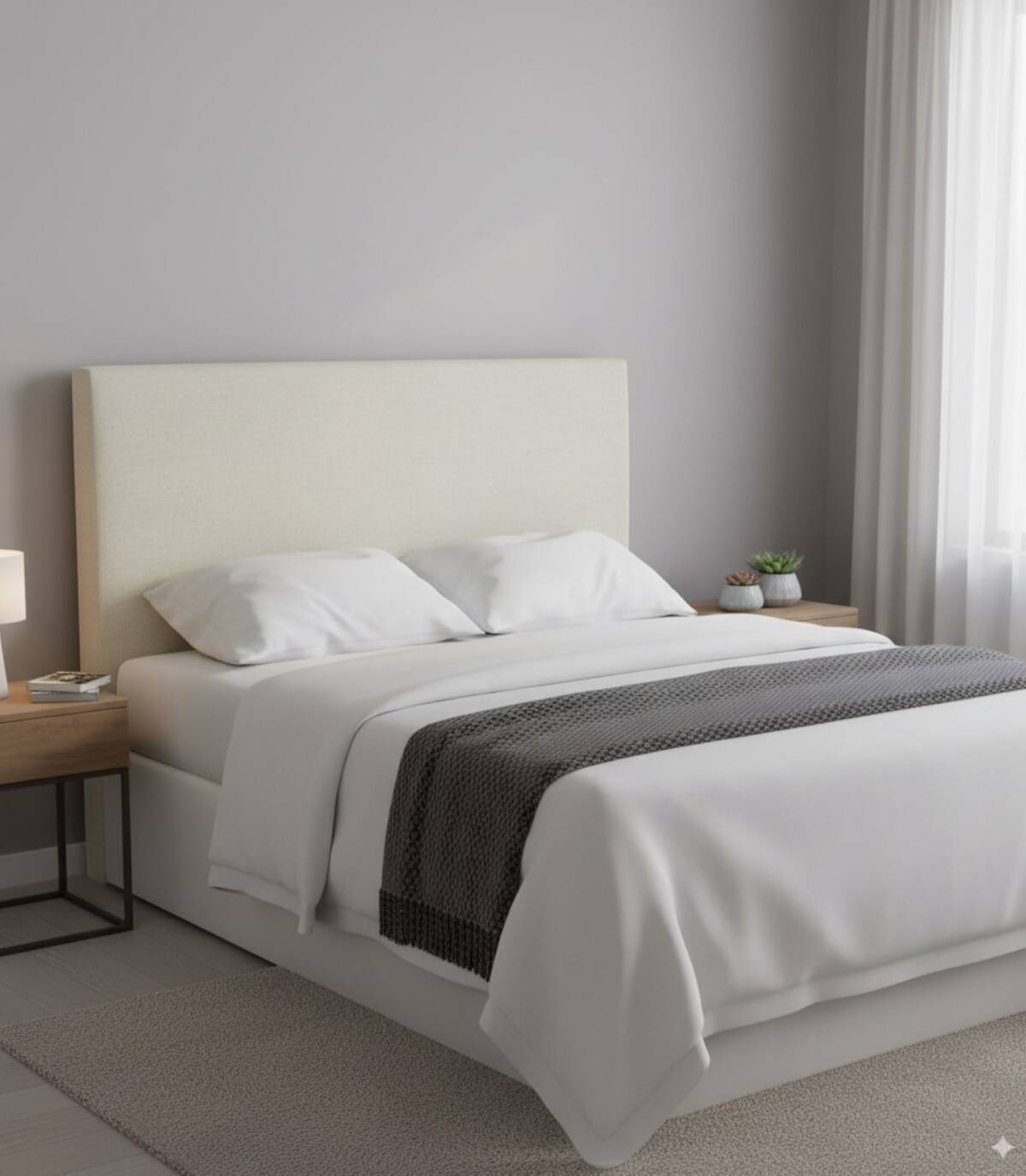 Cabezal Liso tapizado de color blanco para camas de 160 centimetros de ancho.