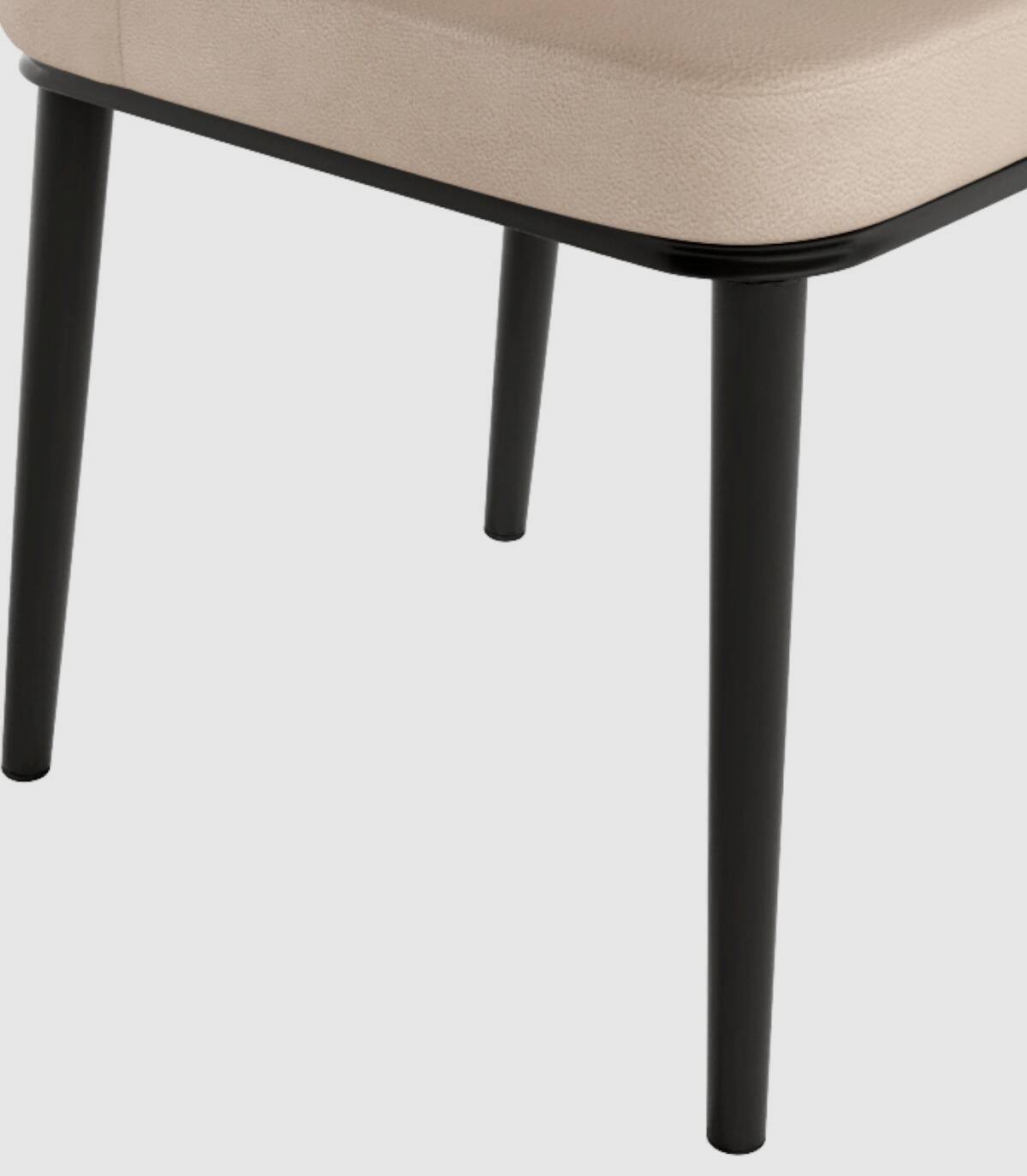 La silla Oslo con asiento y respaldo tapizado , de diseño elegante y moderno, tiene una estructura metálica acabada en color negro.
