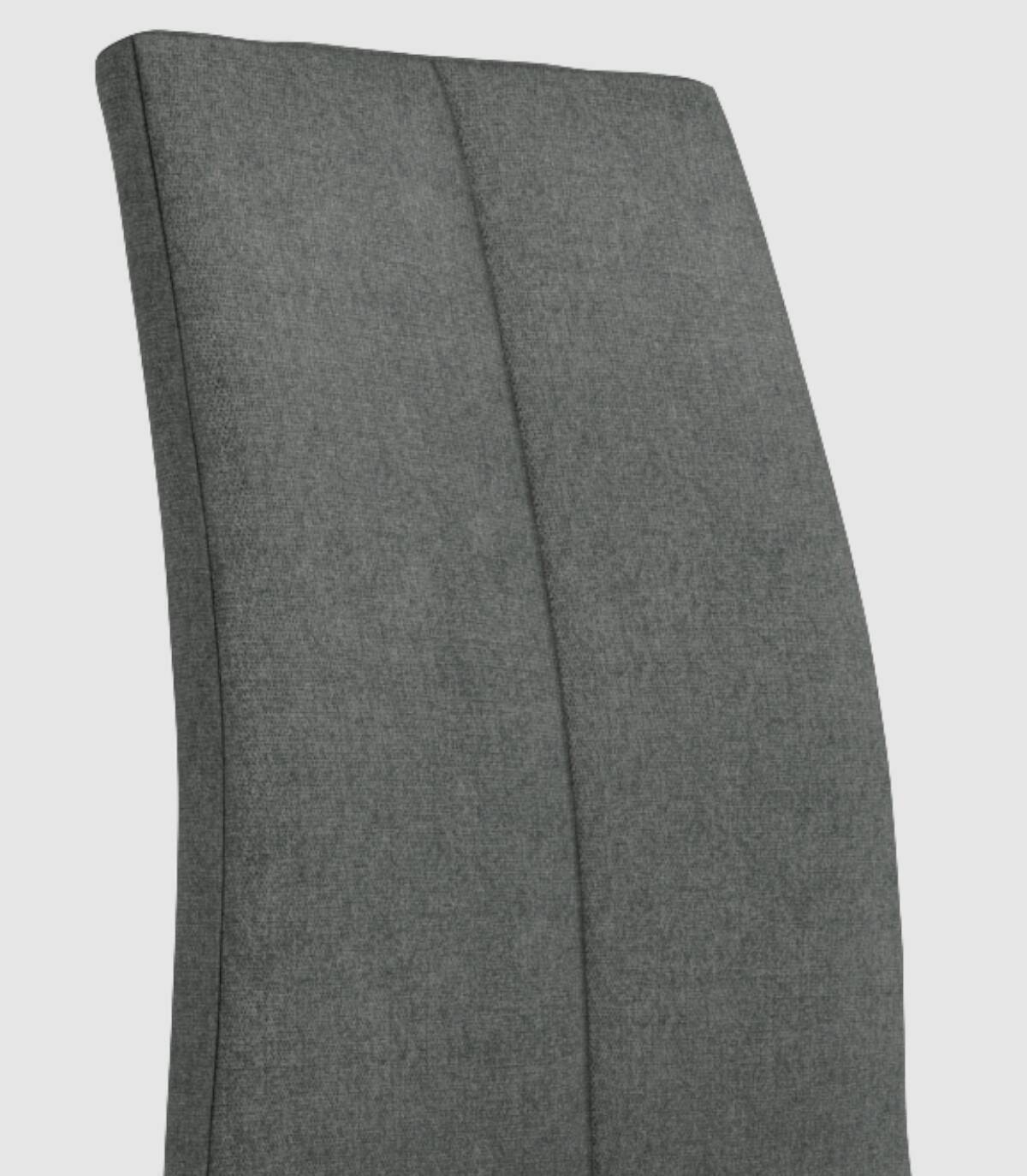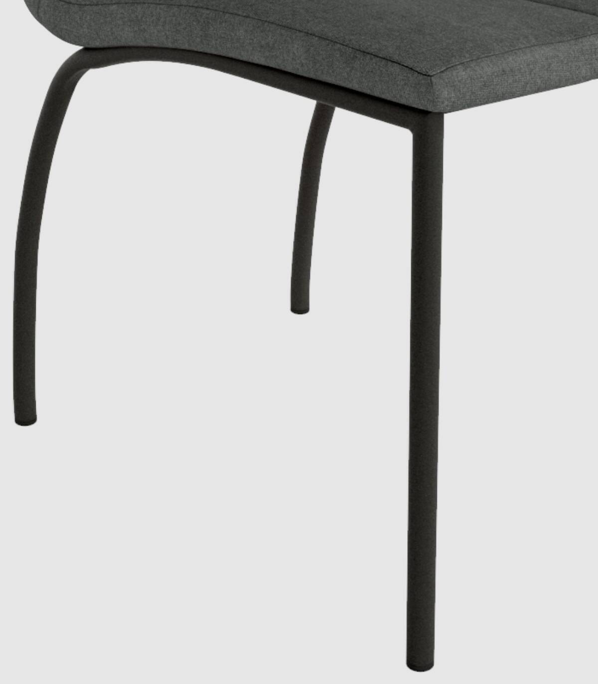 La silla Niza con asiento y respaldo tapizado, de diseño elegante y moderno, tiene una estructura metálica acabada en color negro.