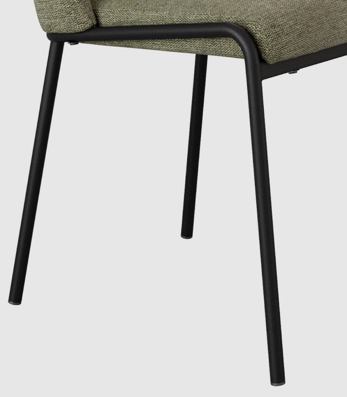 La silla Atlanta con asiento y respaldo tapizado , de diseño elegante y moderno, tiene una estructura metálica acabada en color negro.
