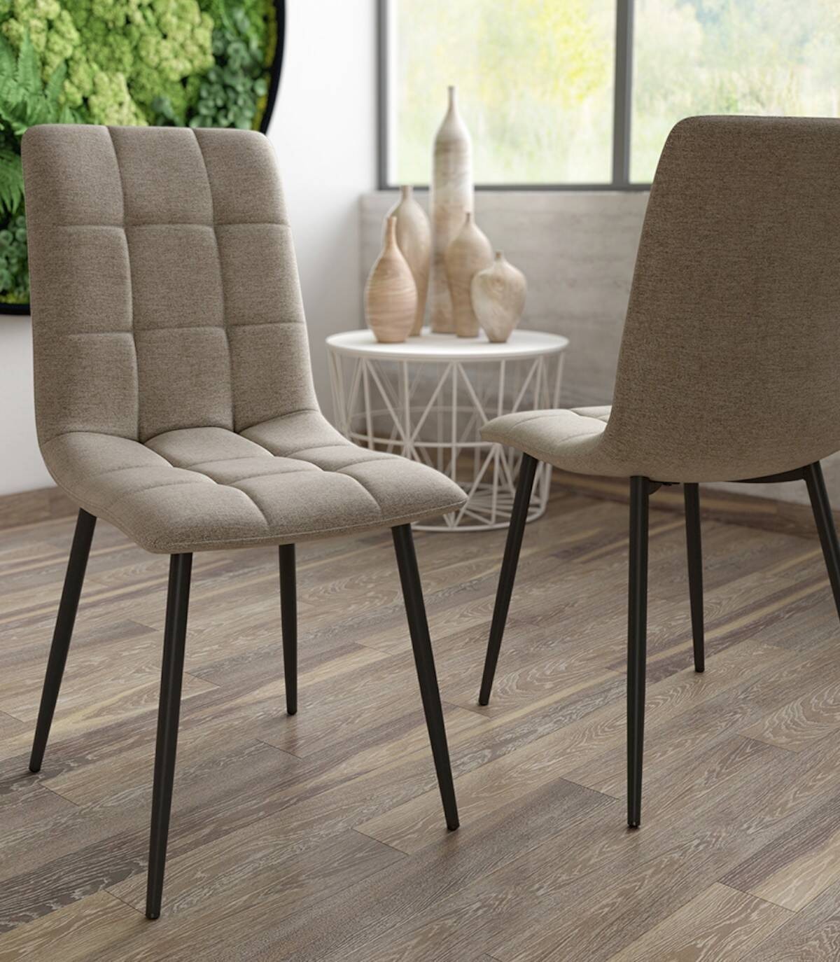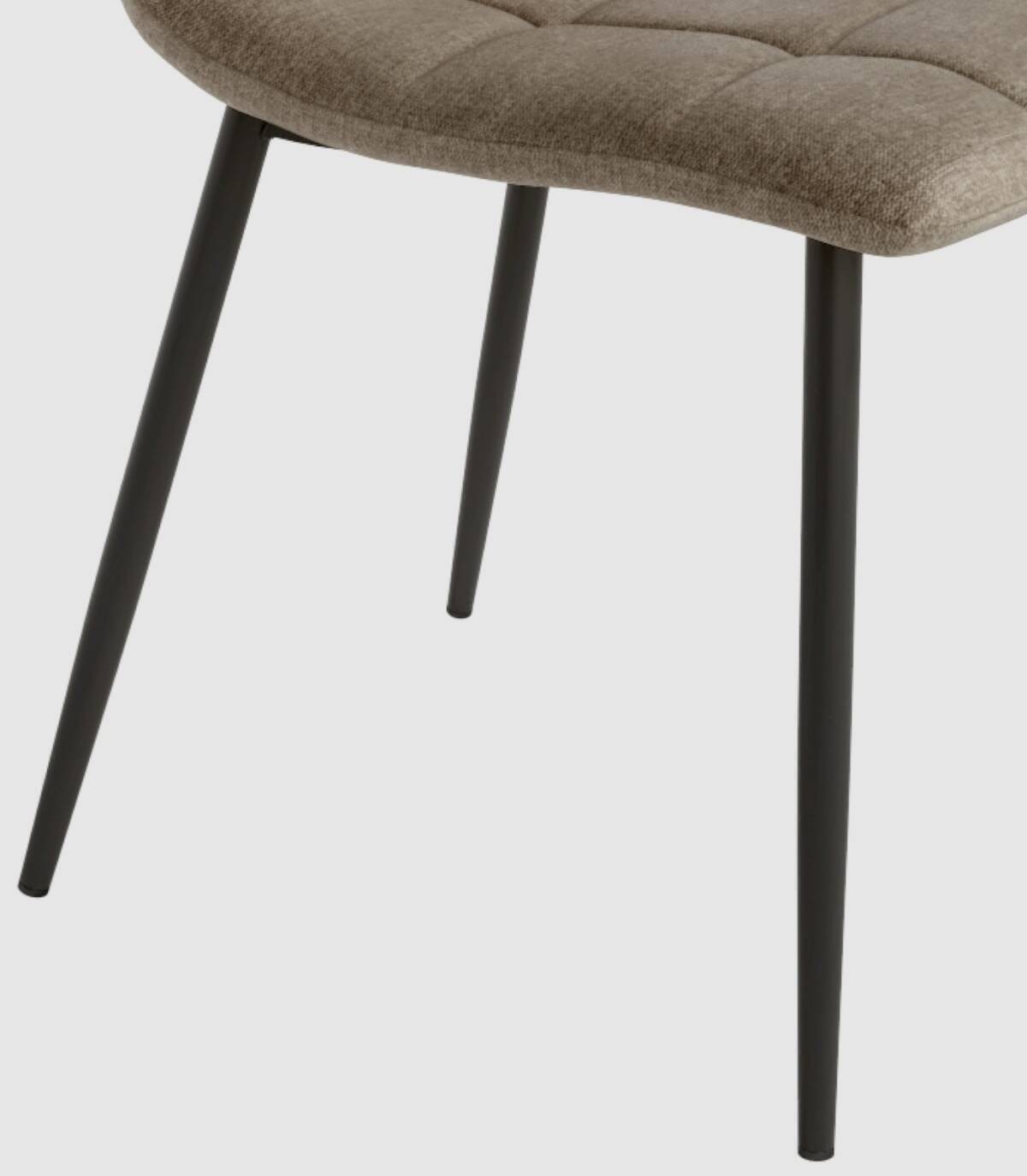 La silla Lisboa con asiento y respaldo tapizado, de diseño elegante y moderno, tiene una estructura metálica acabada en color negro.