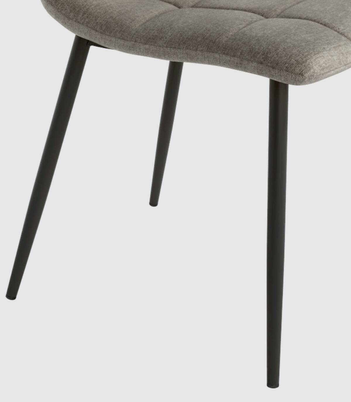 La silla Lisboa con asiento y respaldo tapizado, de diseño elegante y moderno, tiene una estructura metálica acabada en color negro.
