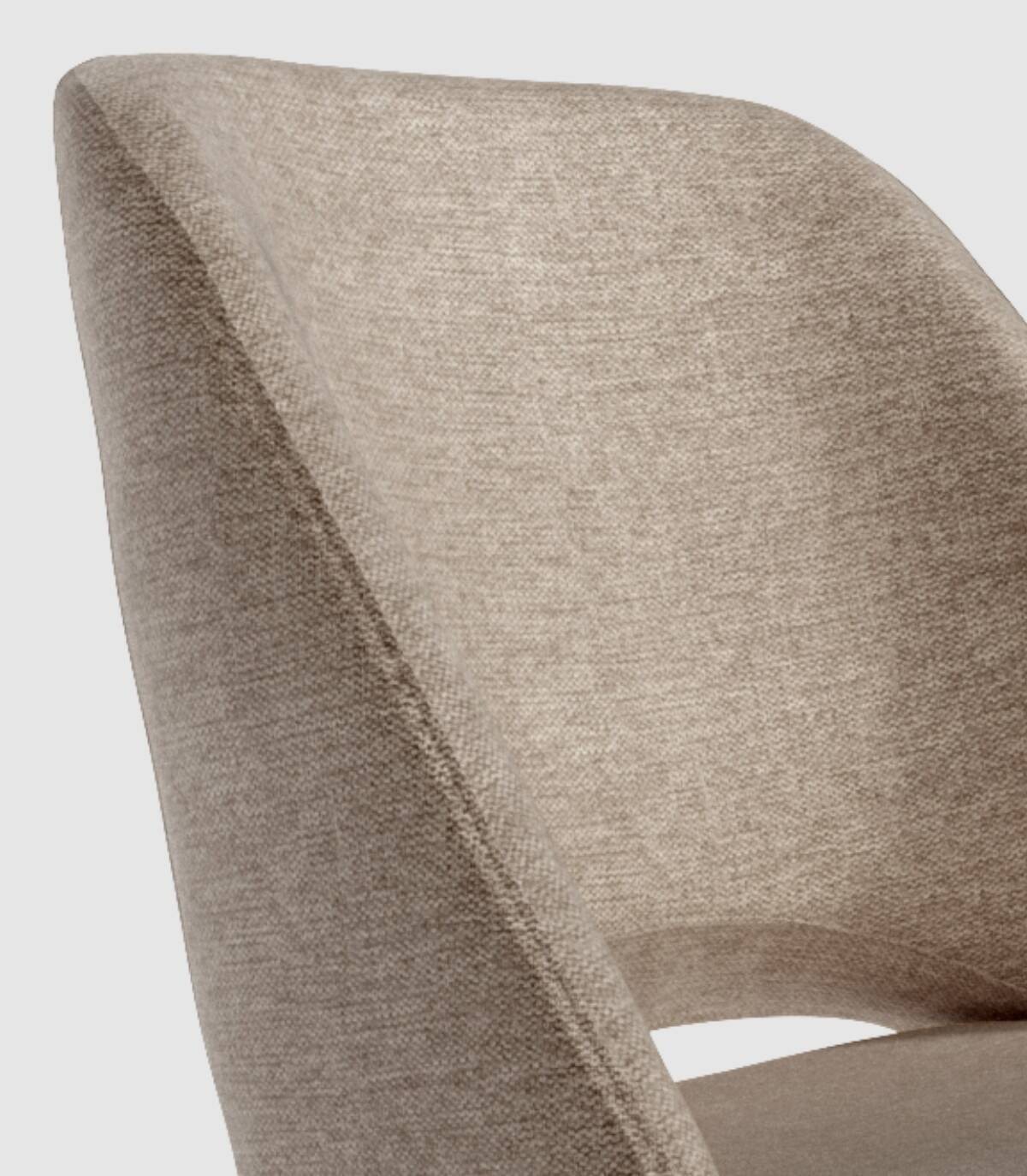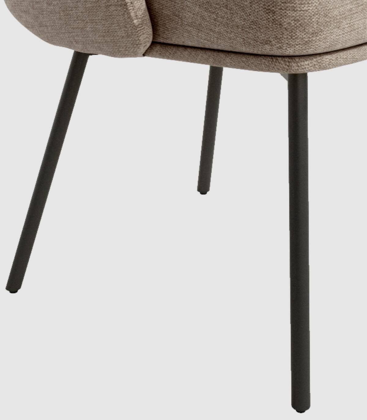 La silla Beirut con asiento y respaldo tapizado, de diseño elegante y moderno, tiene una estructura metálica acabada en color negro.