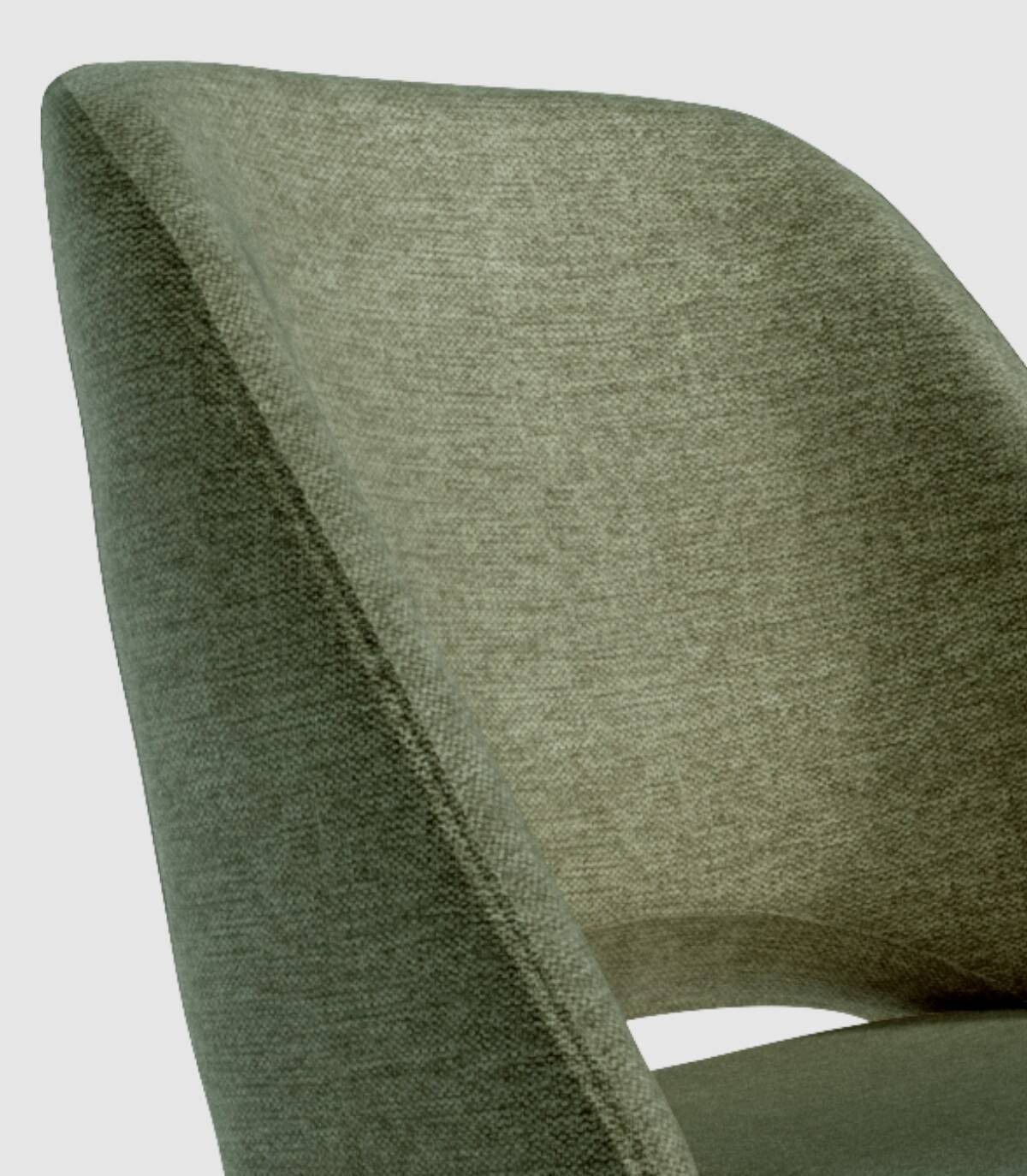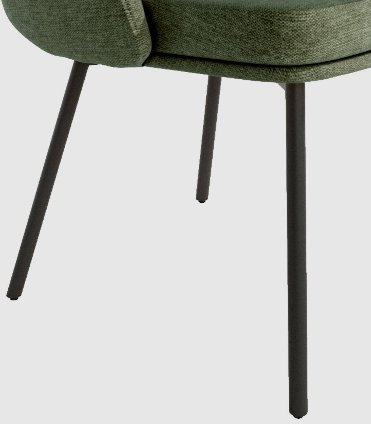 La silla Beirut con asiento y respaldo tapizado, de diseño elegante y moderno, tiene una estructura metálica acabada en color negro.