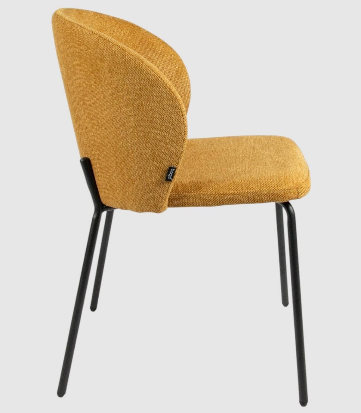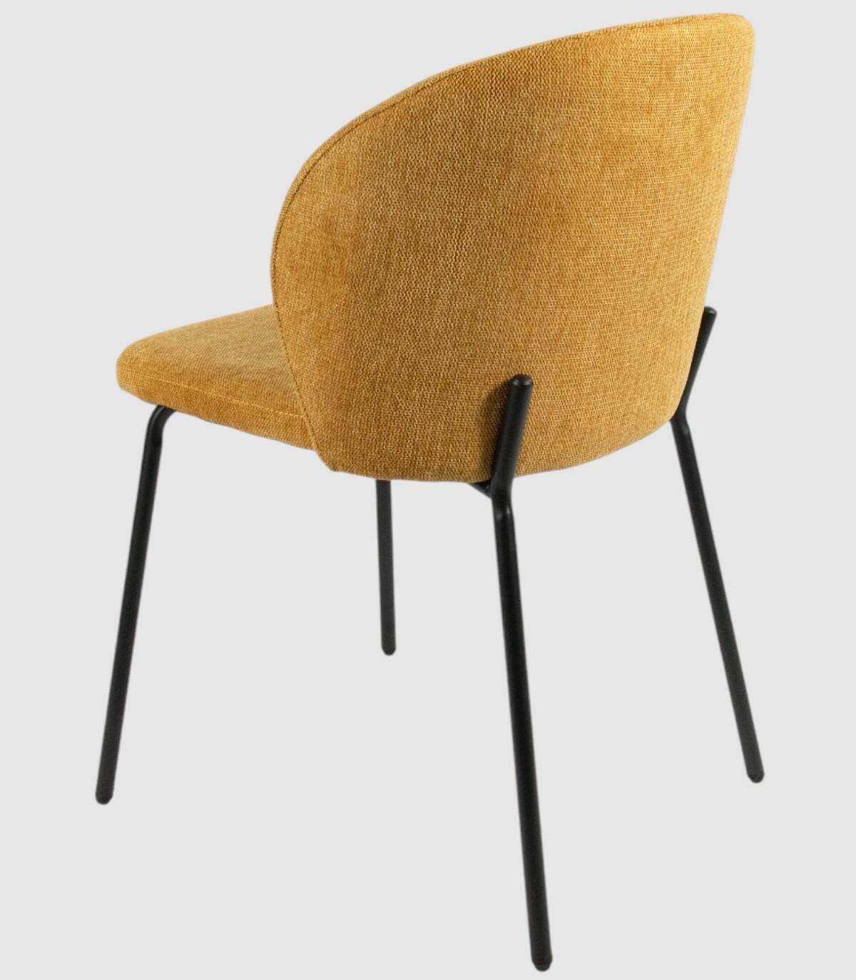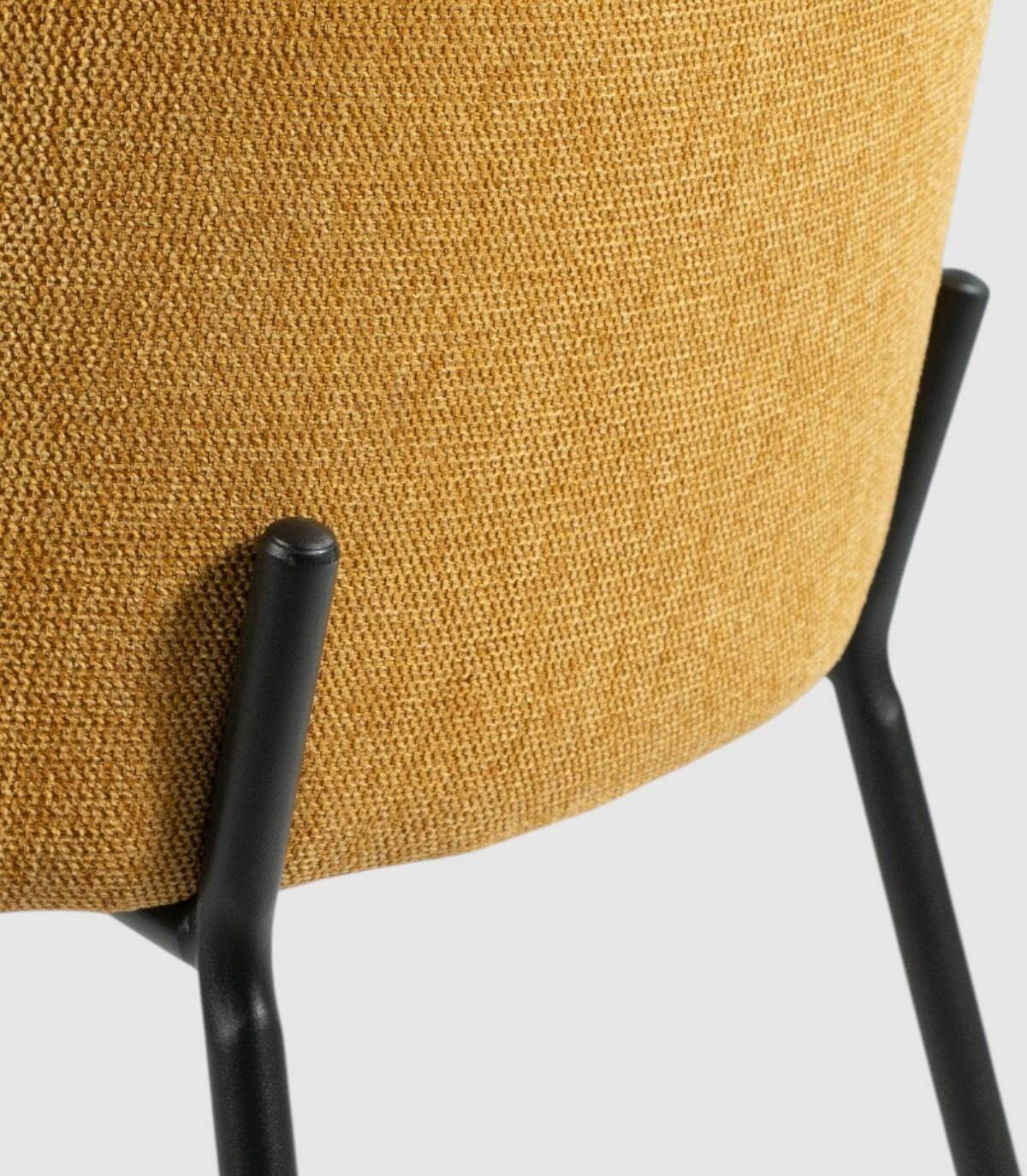 La silla Bergen de comedor se compone de respaldo y asiento tapizado y patas metálicas pintadas de color negro.