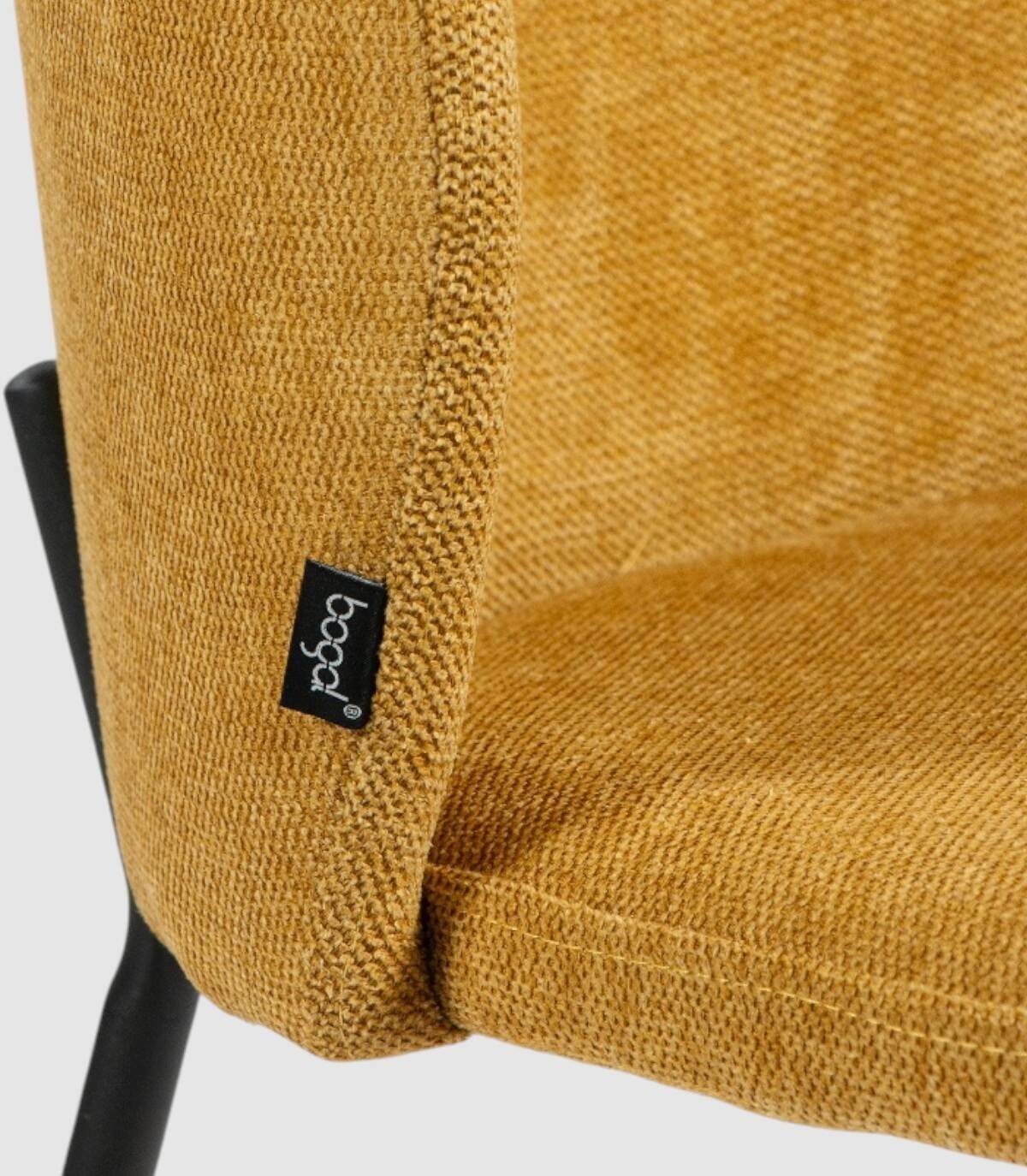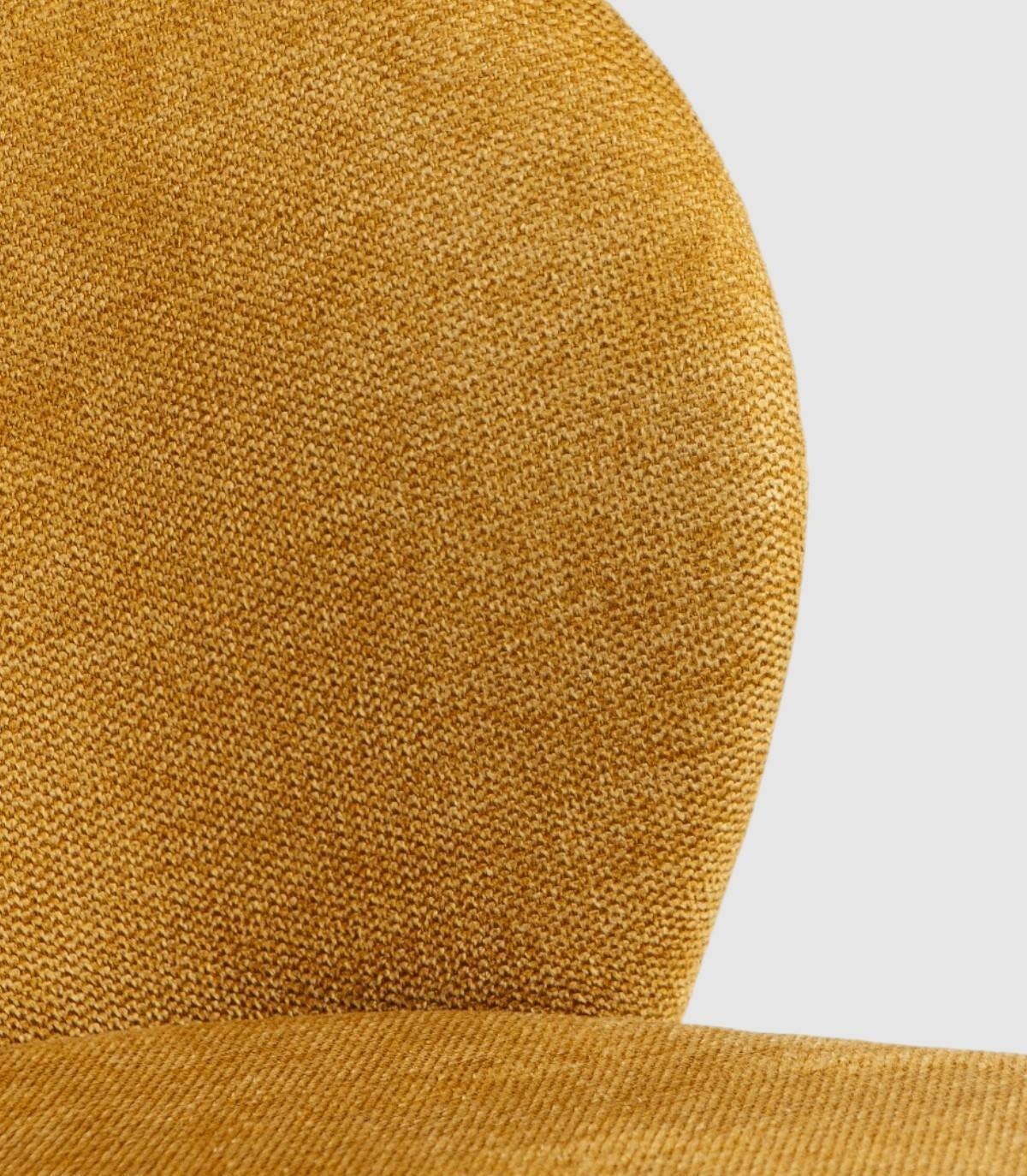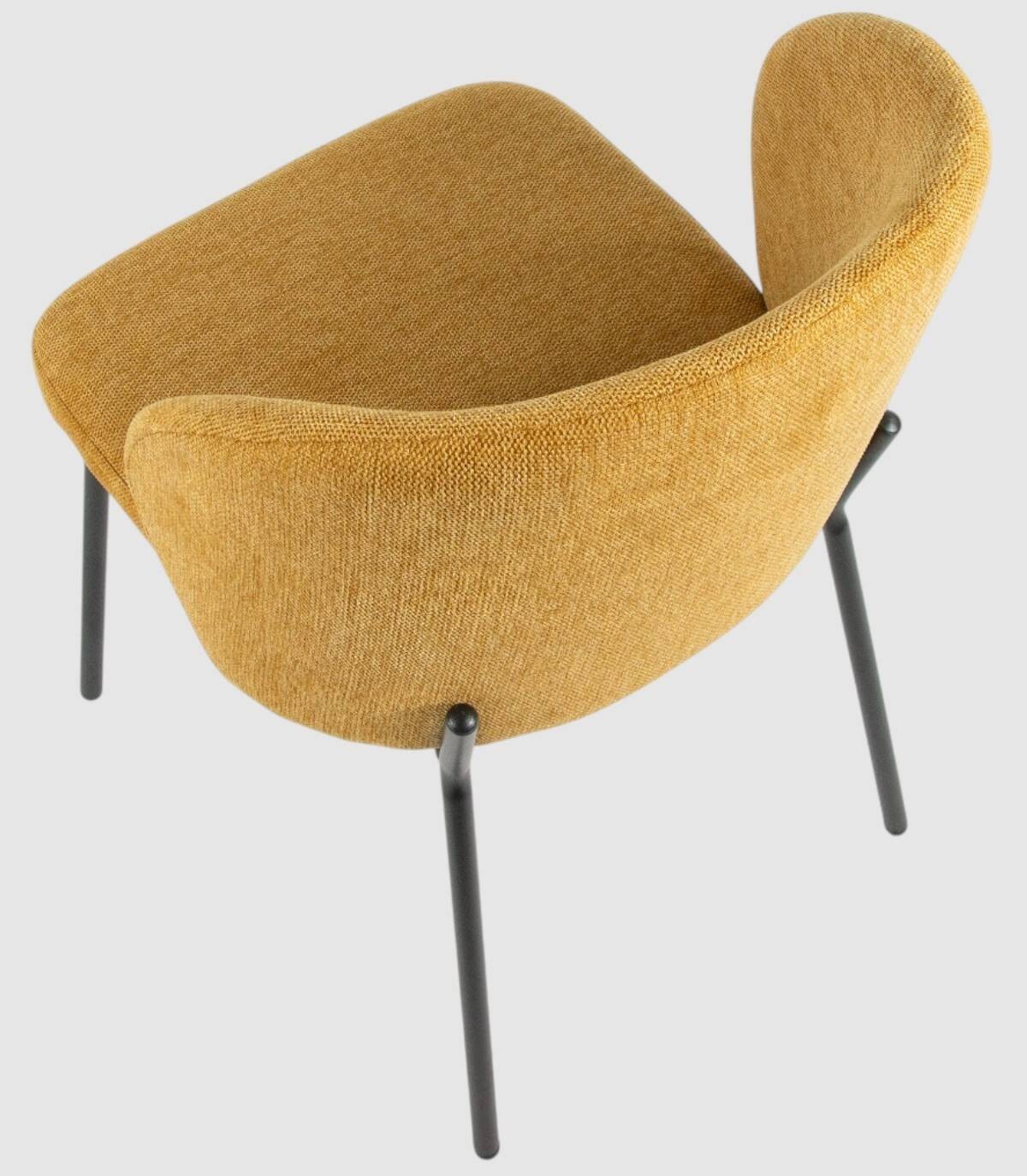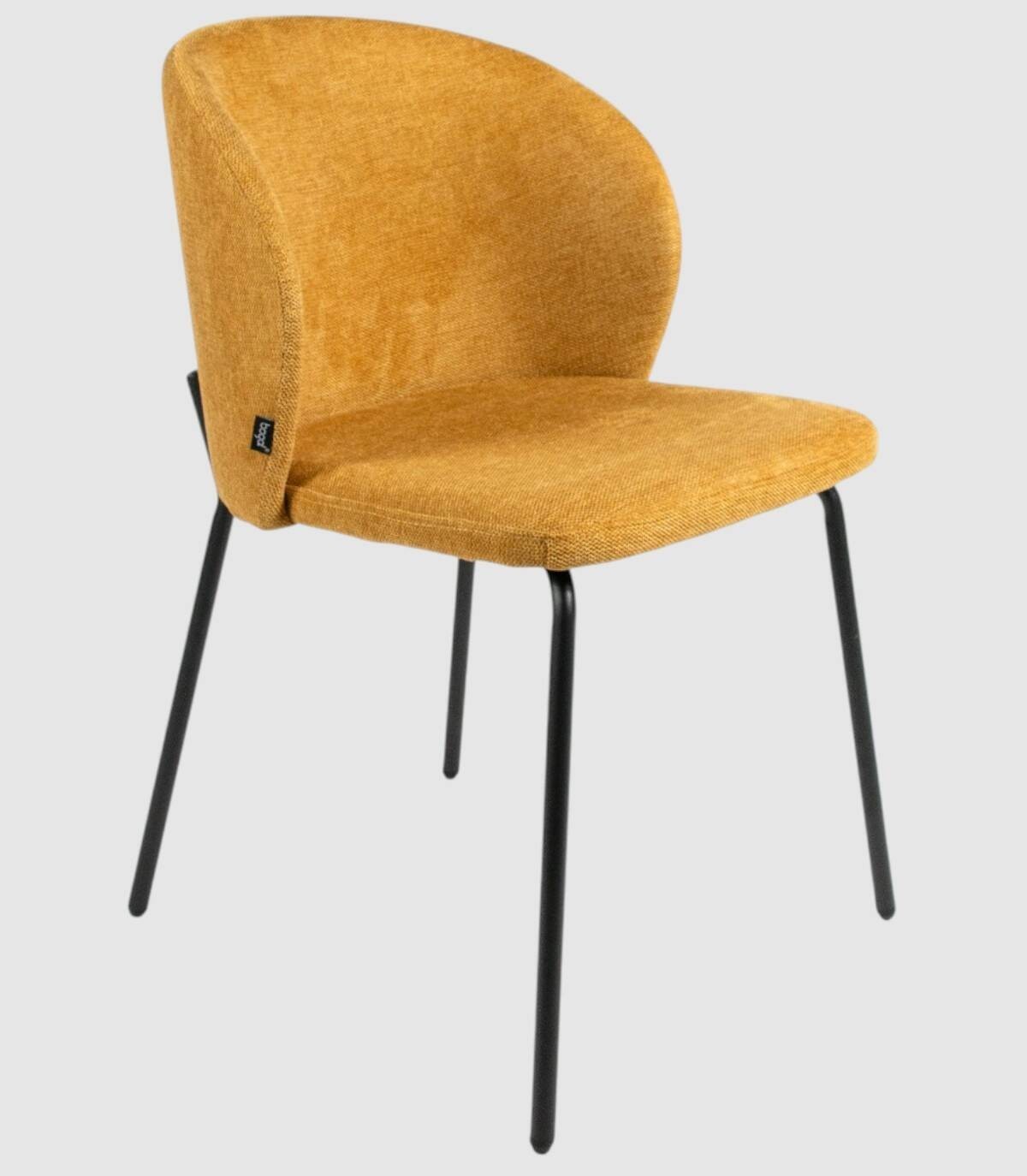 La silla Bergen de comedor se compone de respaldo y asiento tapizado y patas metálicas pintadas de color negro.