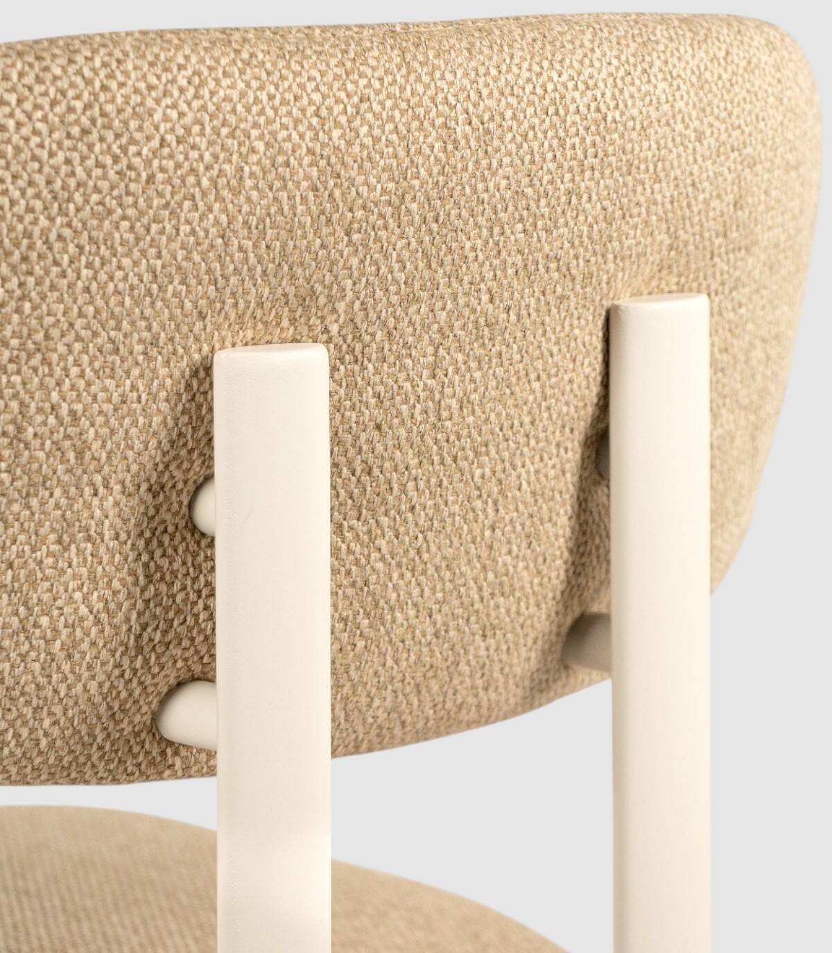 Read moreShow lessHet bestaat uit een gestoffeerde rugleuning en zitting en ivoorgeverfde metalen poten.