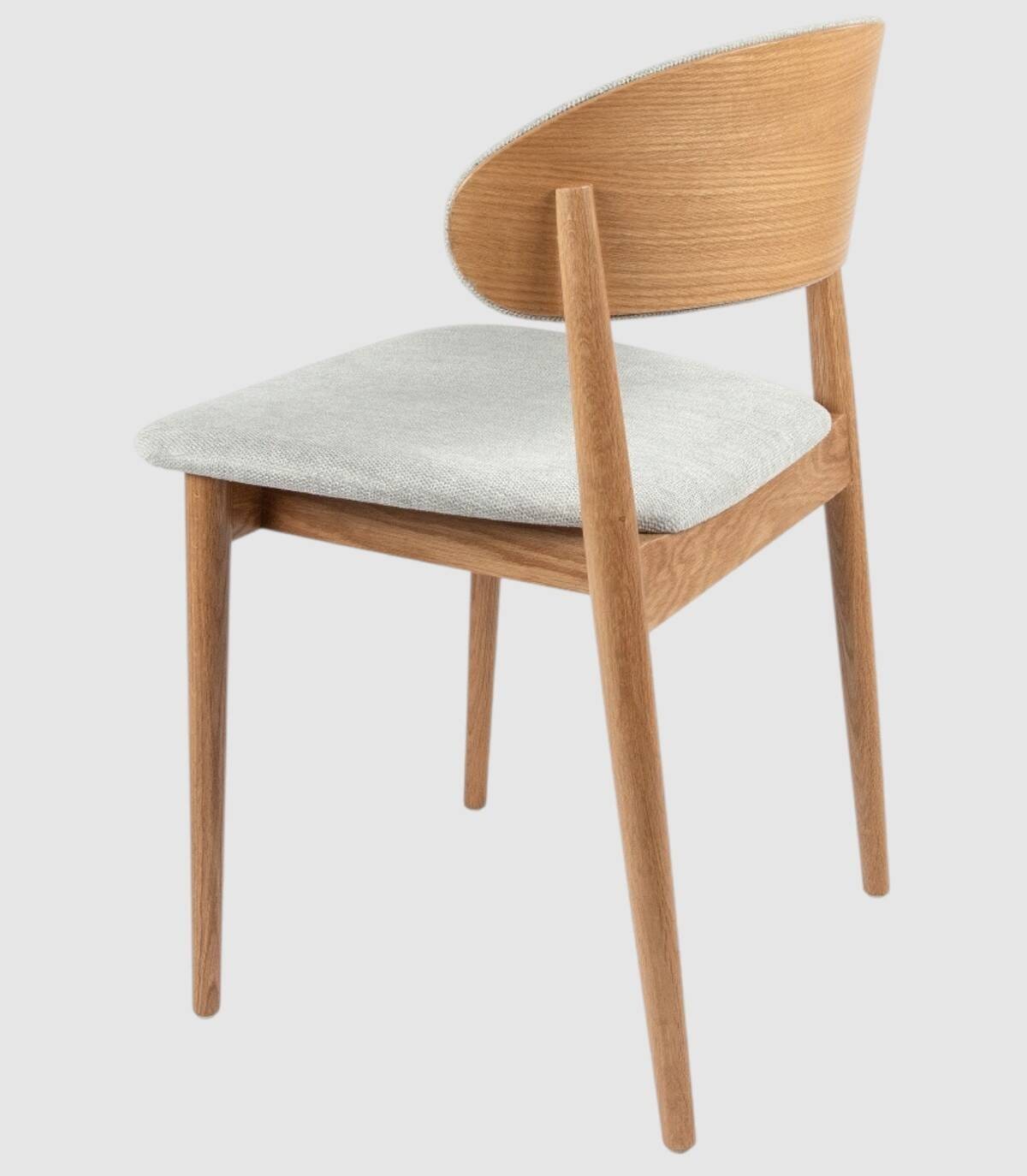Read moreShow lessHet bestaat uit een naturel eikenkleurige en gestoffeerde houten rugleuning, vier houten poten en een gestoffeerde zitting.