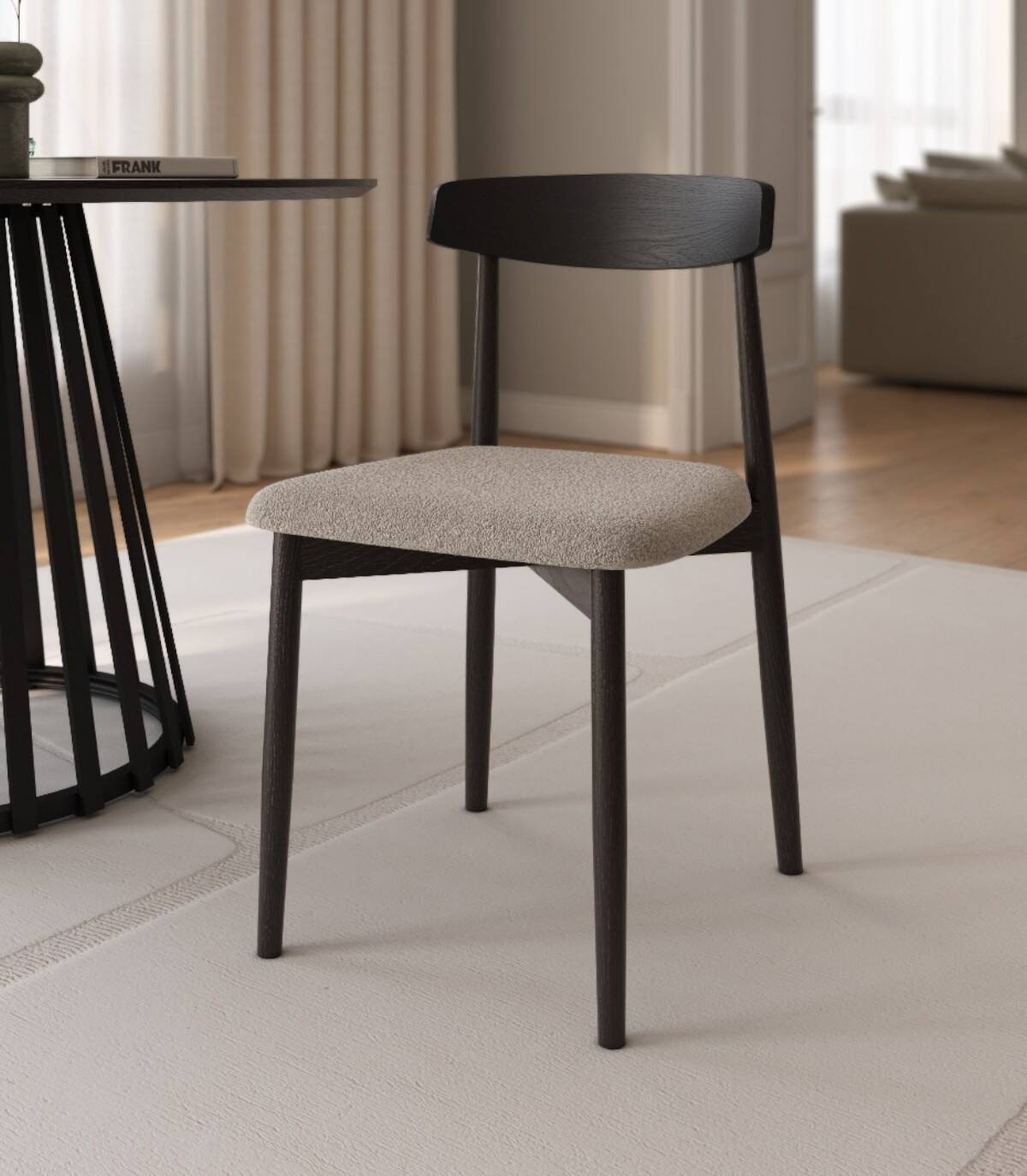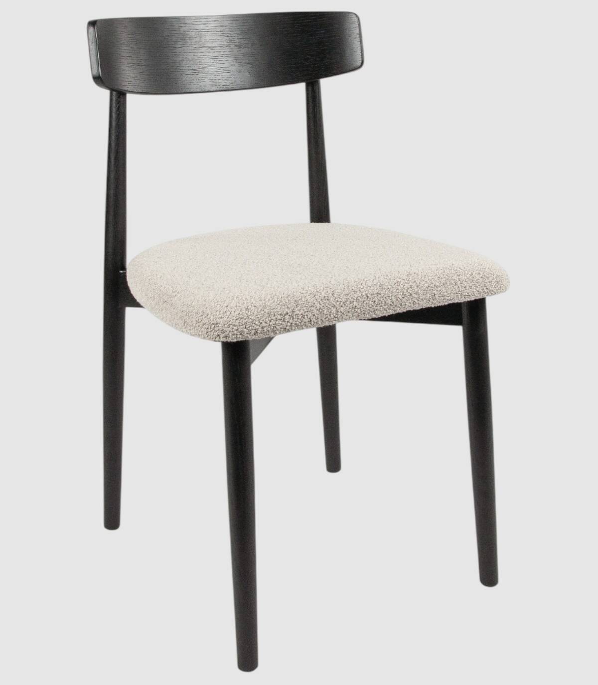 La silla Malmo de comedor se compone de respaldo de madera de color roble natural, cuatro patas de madera y asiento tapizado.