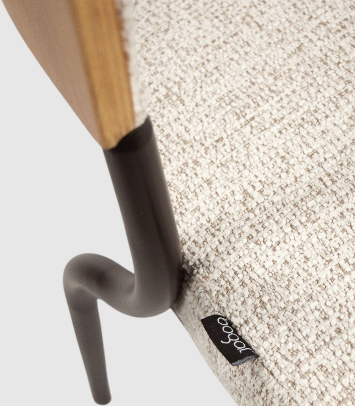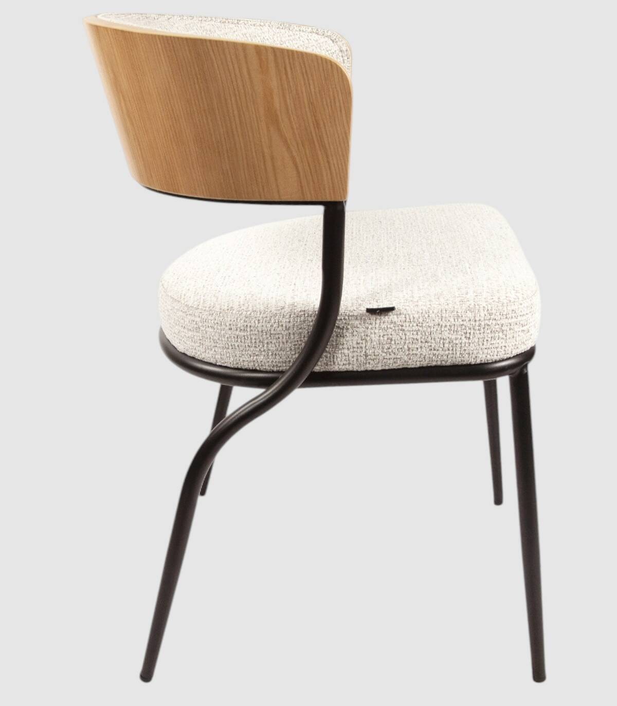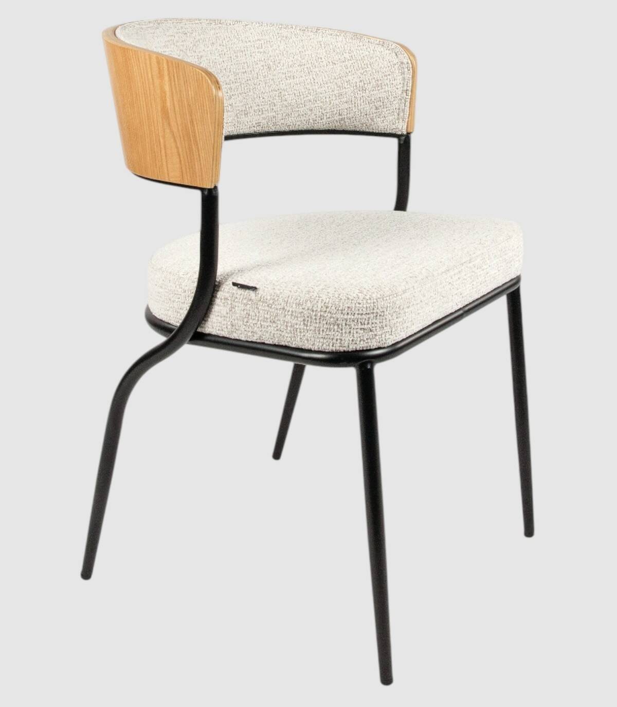 Read moreShow lessHet bestaat uit een naturel eikenkleurige houten rugleuning, zwart metaal en gestoffeerd, vier zwart metalen poten en gestoffeerde zitting.