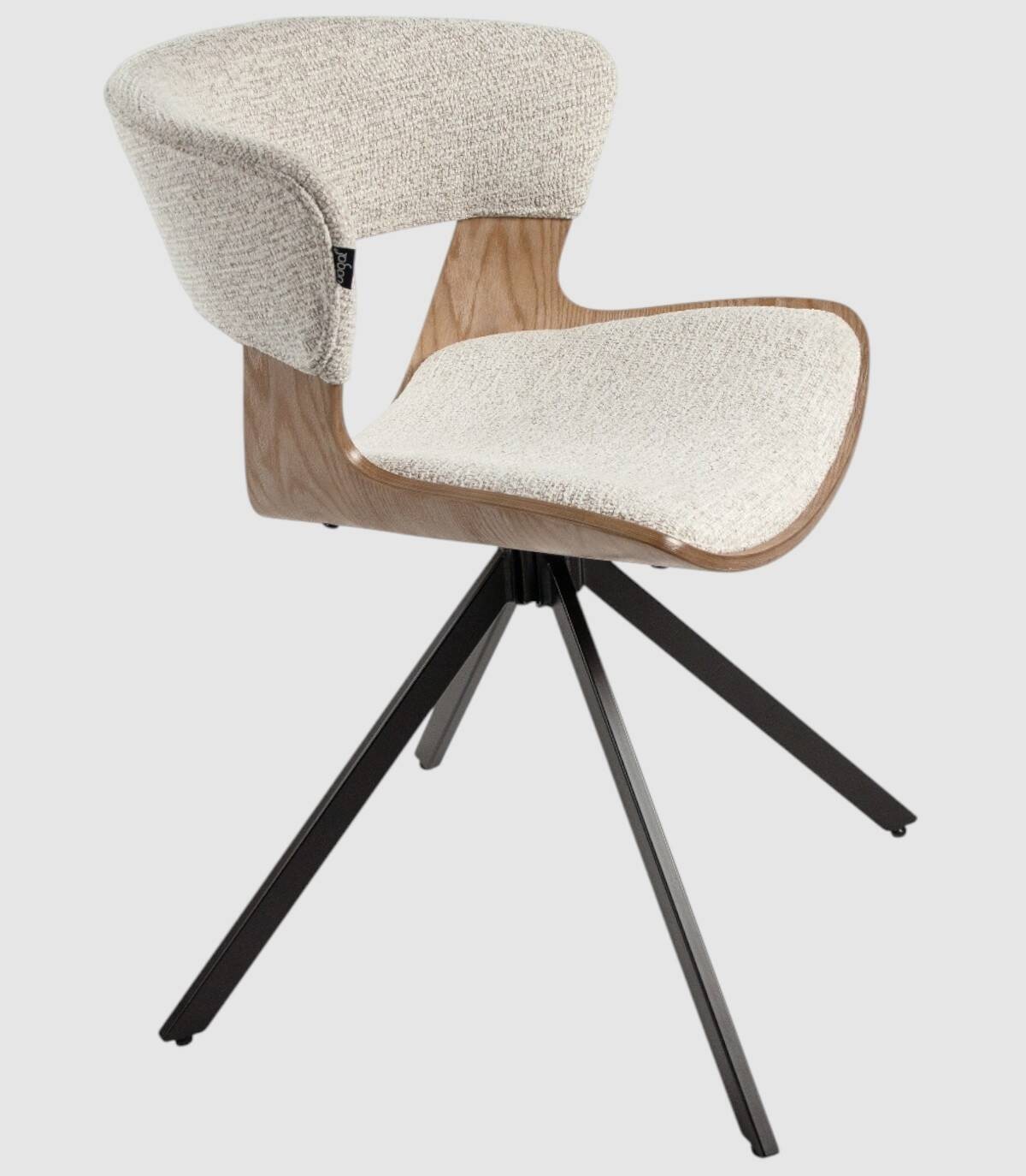 Read moreShow lessHet bestaat uit een gestripte en gestoffeerde eikenkleurige houten rugleuning, vier zwart metalen poten en een gestoffeerde zitting.
