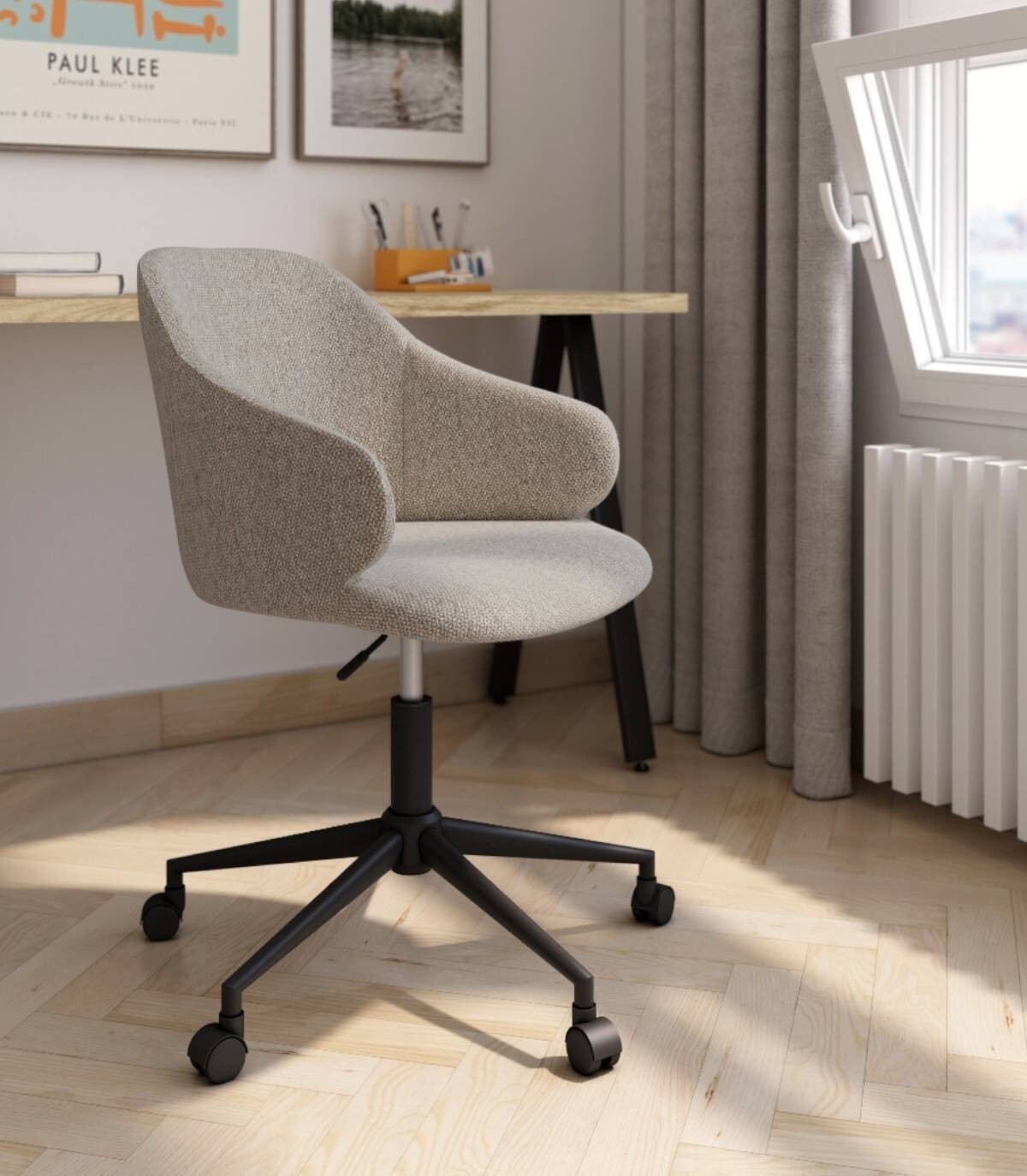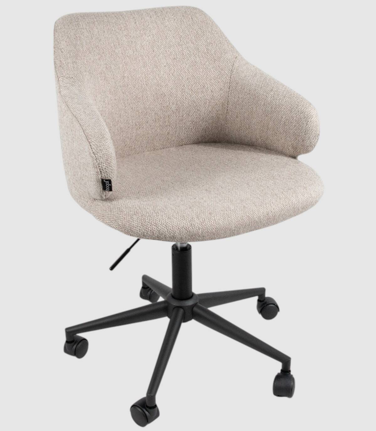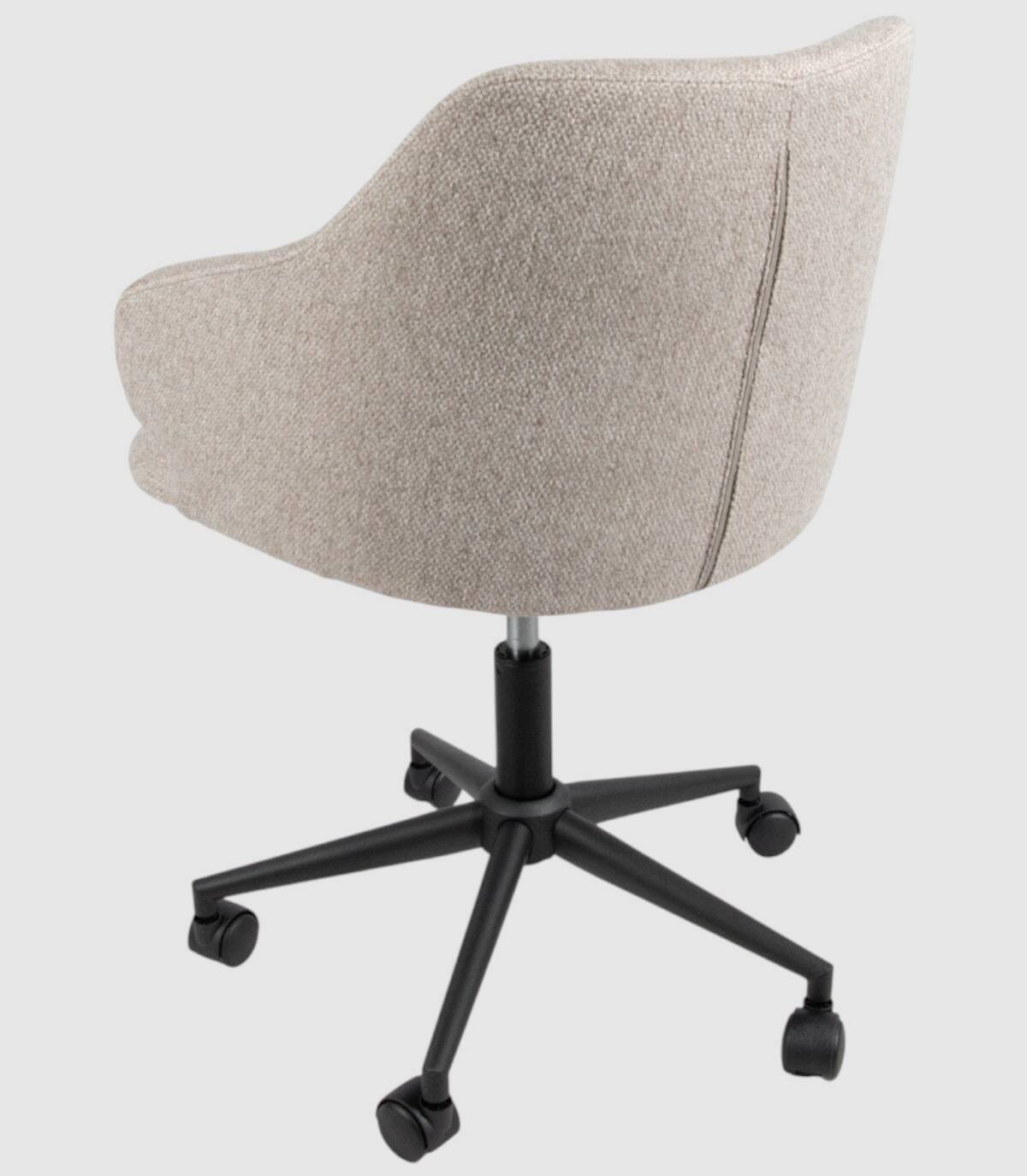 La silla Glasgow elevable giratoria 360 grados de escritorio y oficina se compone de respaldo, asiento tapizado y cinco patas metálicas negras.con ruedas.