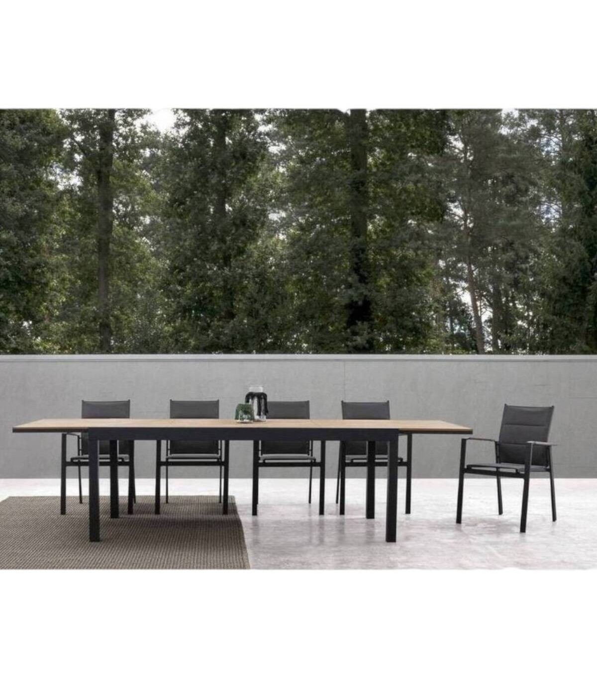 Het is gemaakt van gepoedercoat aluminium (polyester) en armen bedekt met polywood, de zitting en rugleuning zijn gemaakt van 2x1 textiline (gevuld) wat de ondersteuning sterker maakt, bij gebruik van textiline is een kussen niet nodig.