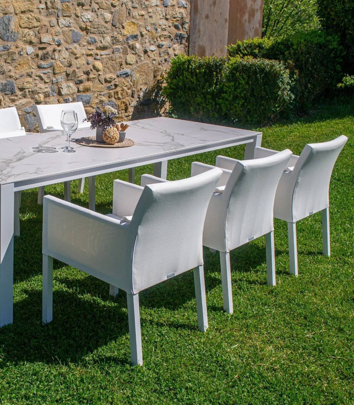 De Lissabon eetkamerstoel Het is gemaakt van gepoedercoat aluminium (polyester). Het heeft een zitting van textileen stof. Alle 4 poten hebben antislip doppen.