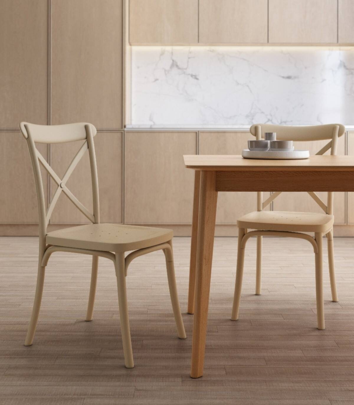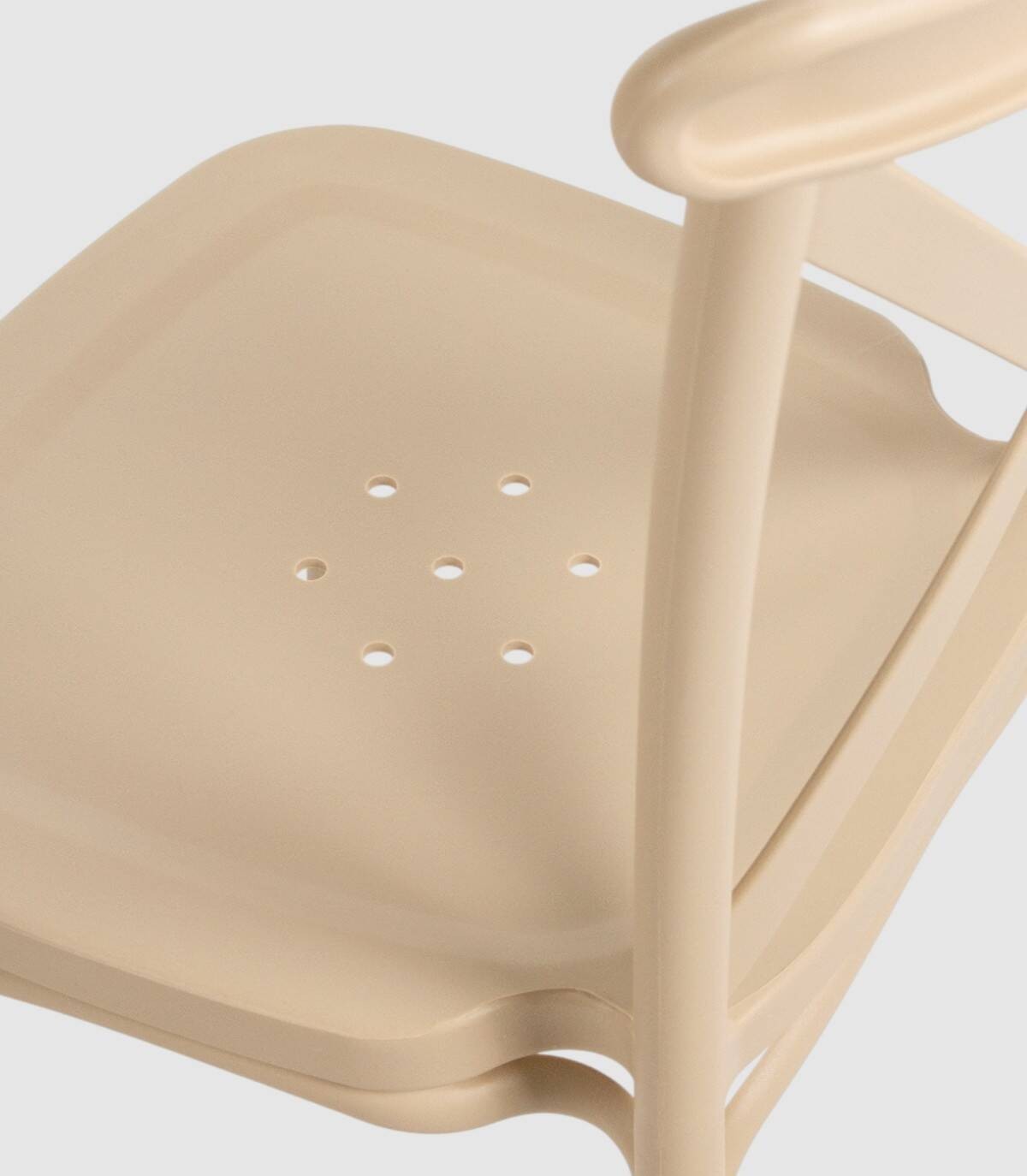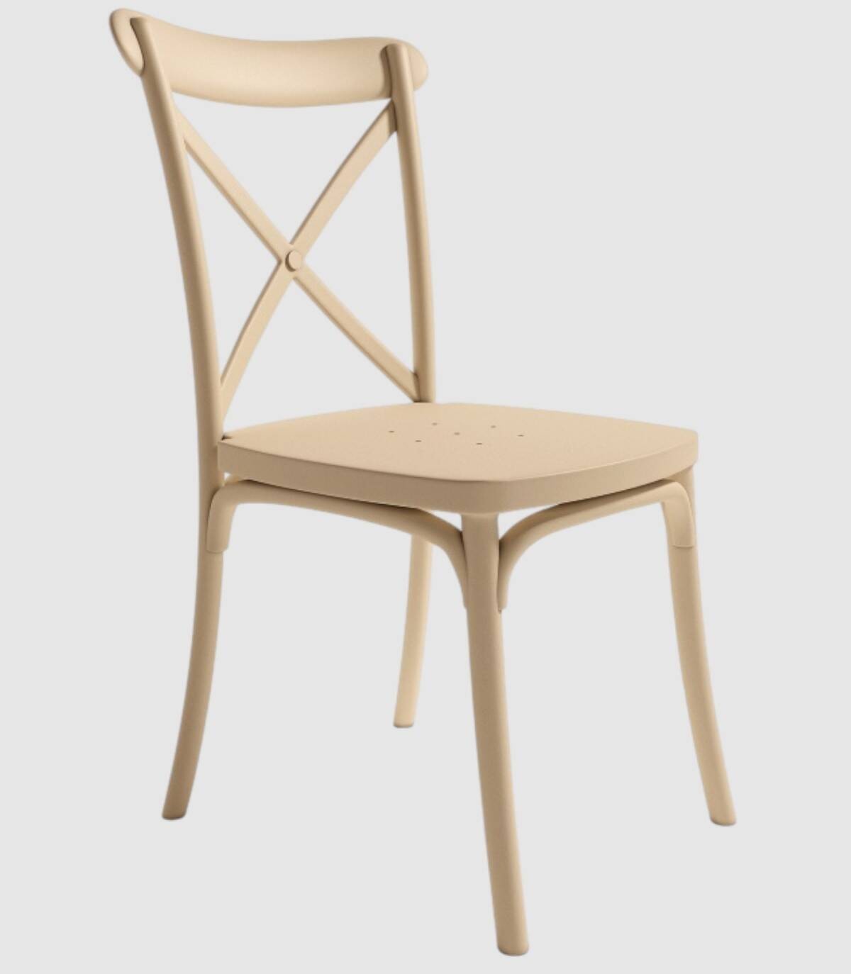 De Roma stapelbare stoel in monoblokstijl, Het heeft een elegant en modern ontwerp en een structuur van polypropyleen met een afwerking in dezelfde kleur.