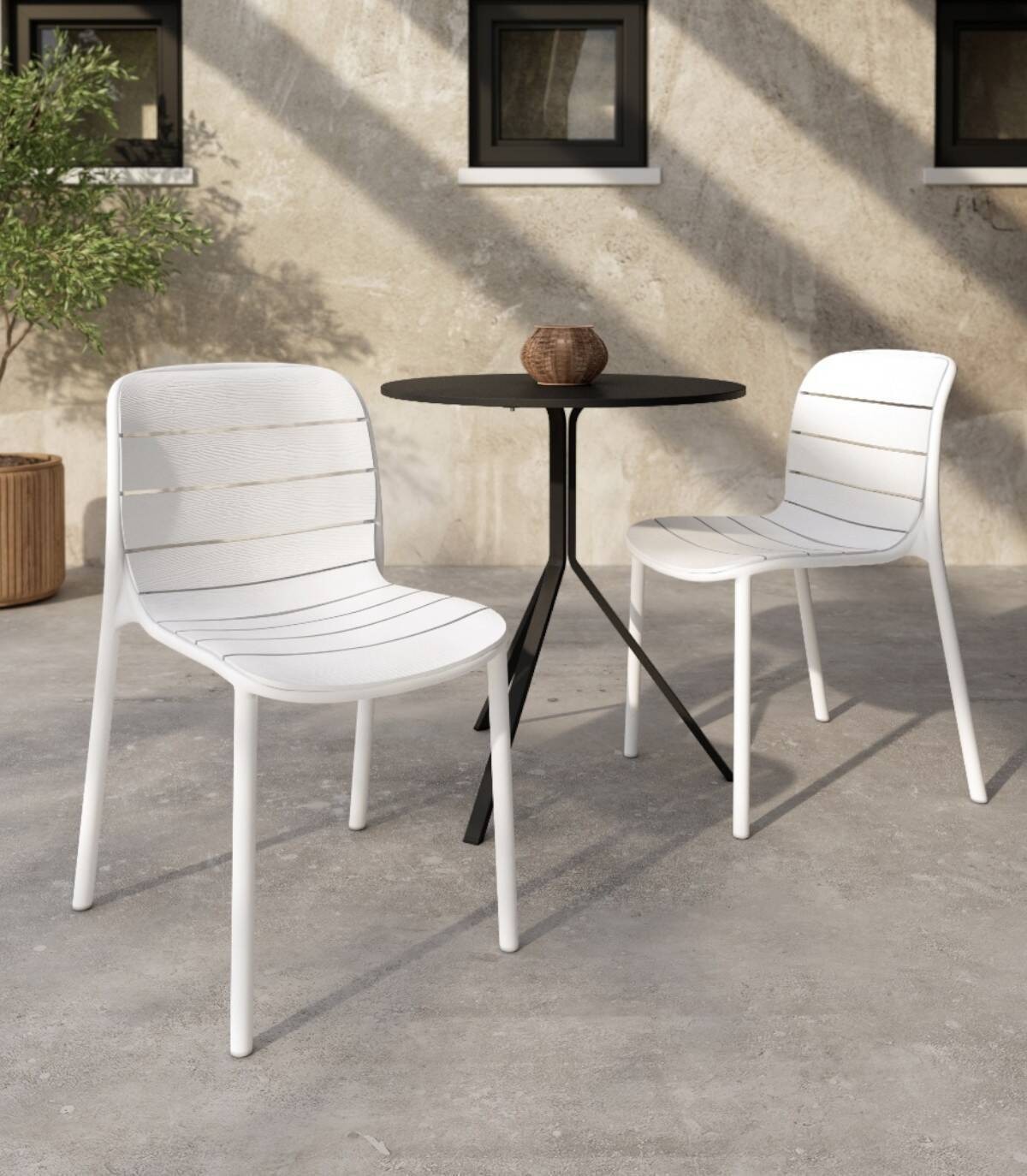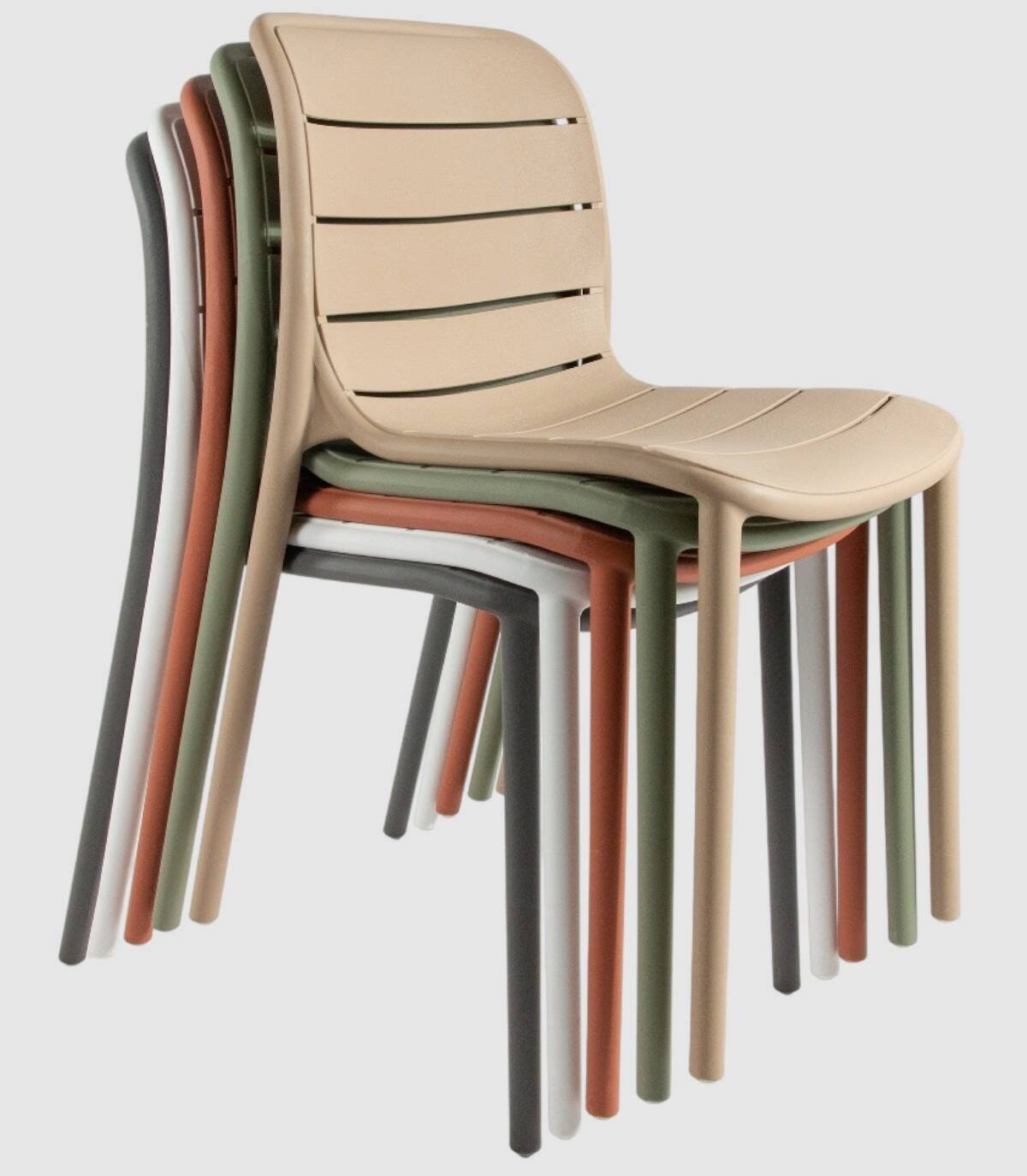 Read moreShow lessHet bestaat uit een rugleuning, zitting en poten van polypropyleen, geverfd in dezelfde kleur met een horizontaal geperforeerd lattenontwerp.