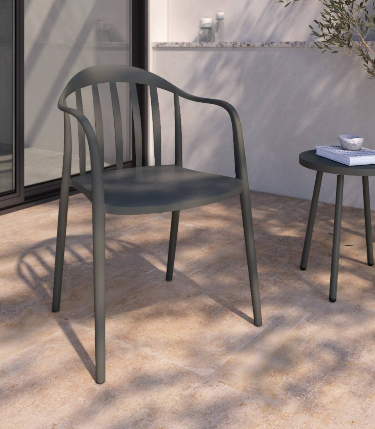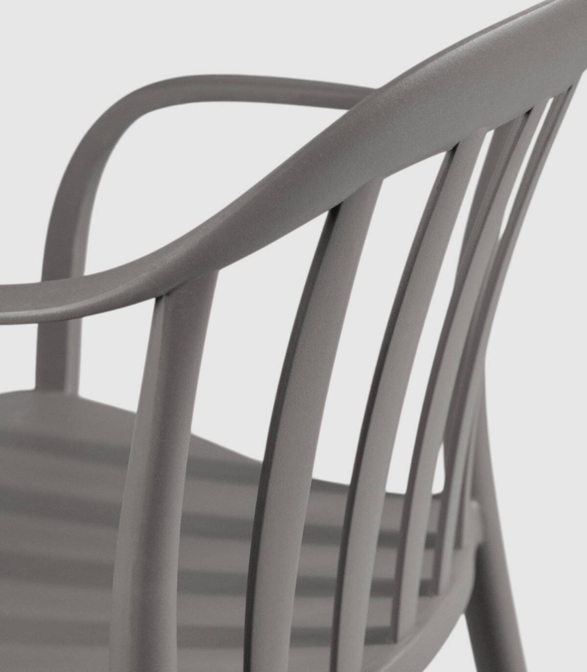 Read moreShow lessHet bestaat uit een rugleuning, zitting, armleuningen en poten van polypropyleen, geverfd in dezelfde kleur met een ontwerp van verticale spijlen.