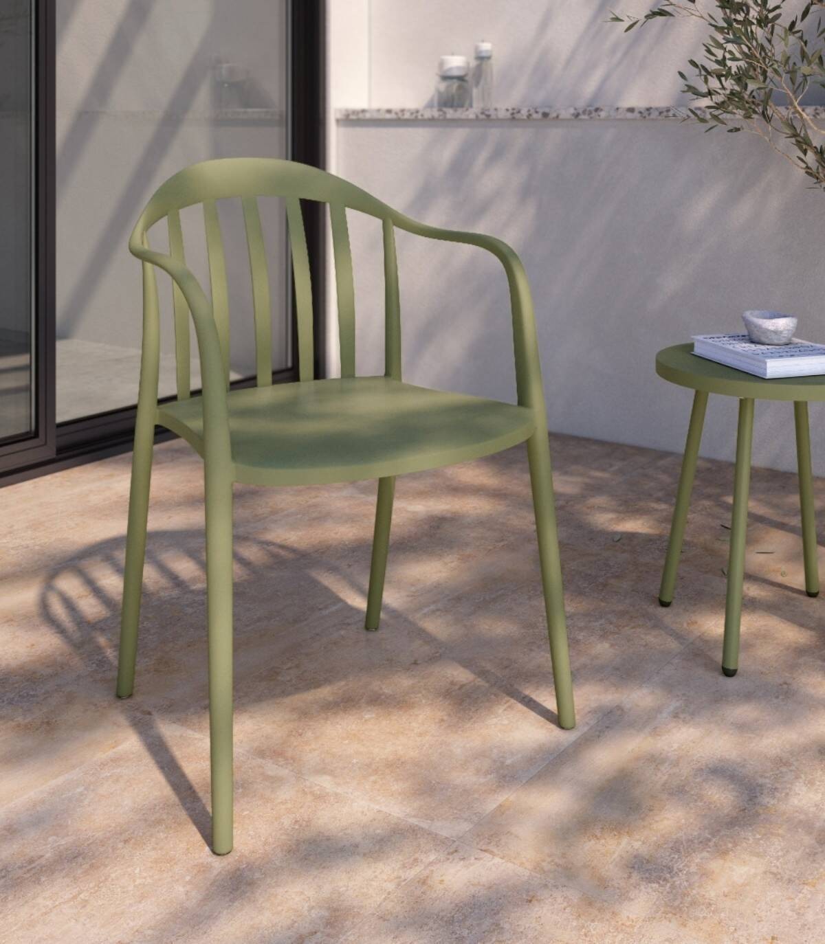 Read moreShow lessHet bestaat uit een rugleuning, zitting, armleuningen en poten van polypropyleen, geverfd in dezelfde kleur met een ontwerp van verticale spijlen.