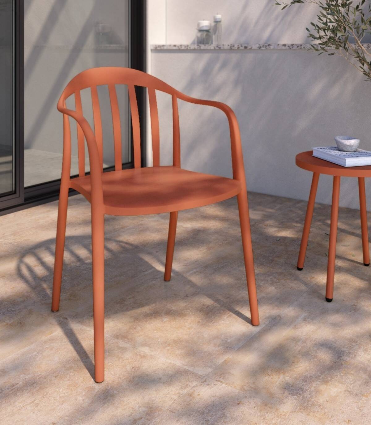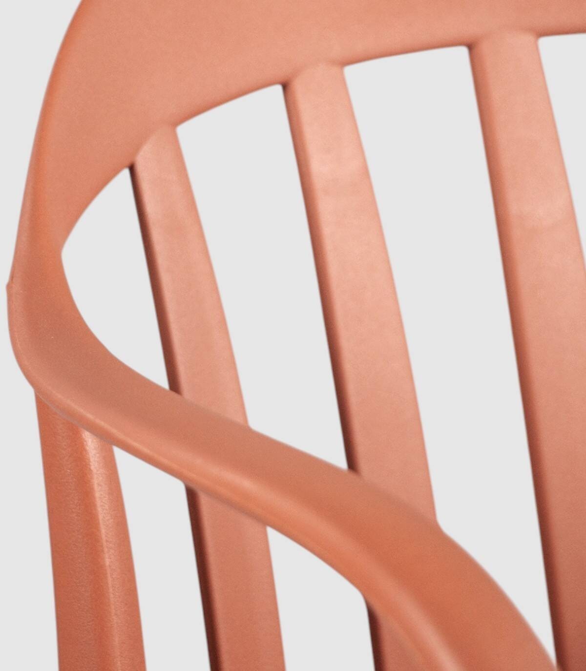 Read moreShow lessHet bestaat uit een rugleuning, zitting, armleuningen en poten van polypropyleen, geverfd in dezelfde kleur met een ontwerp van verticale spijlen.