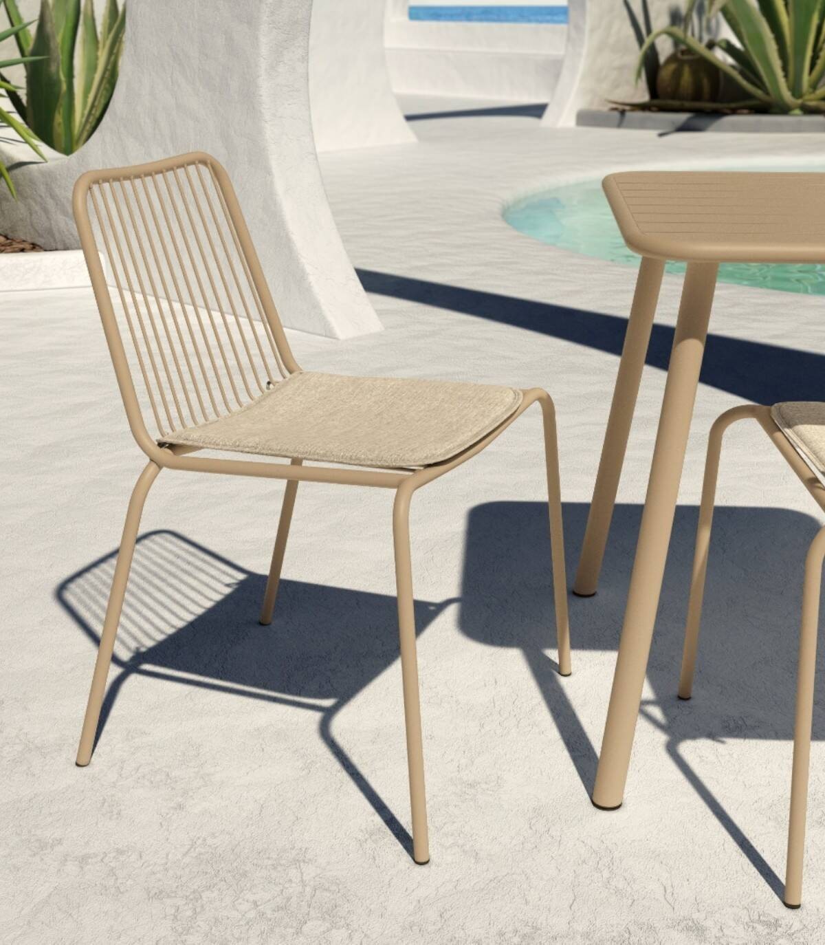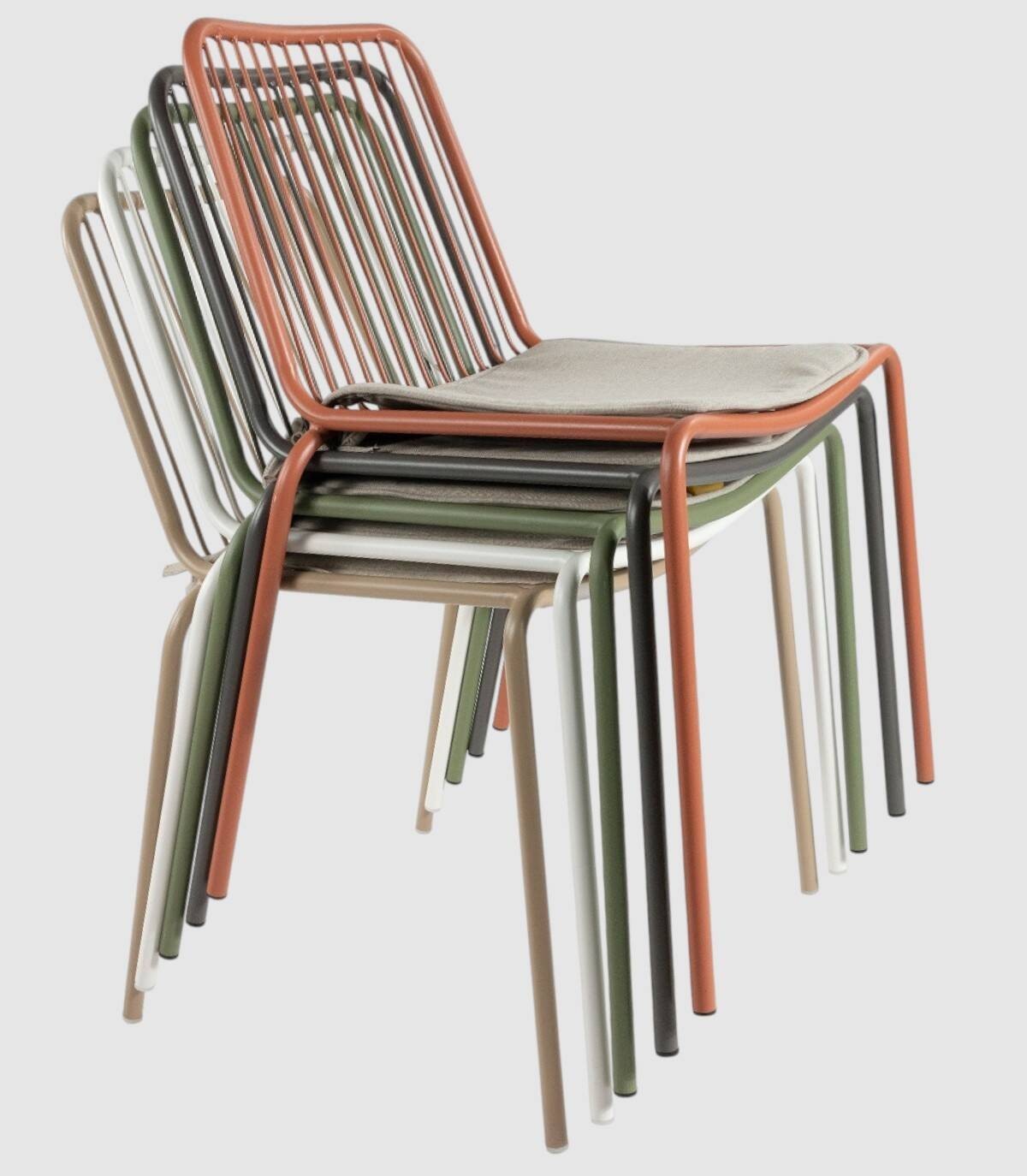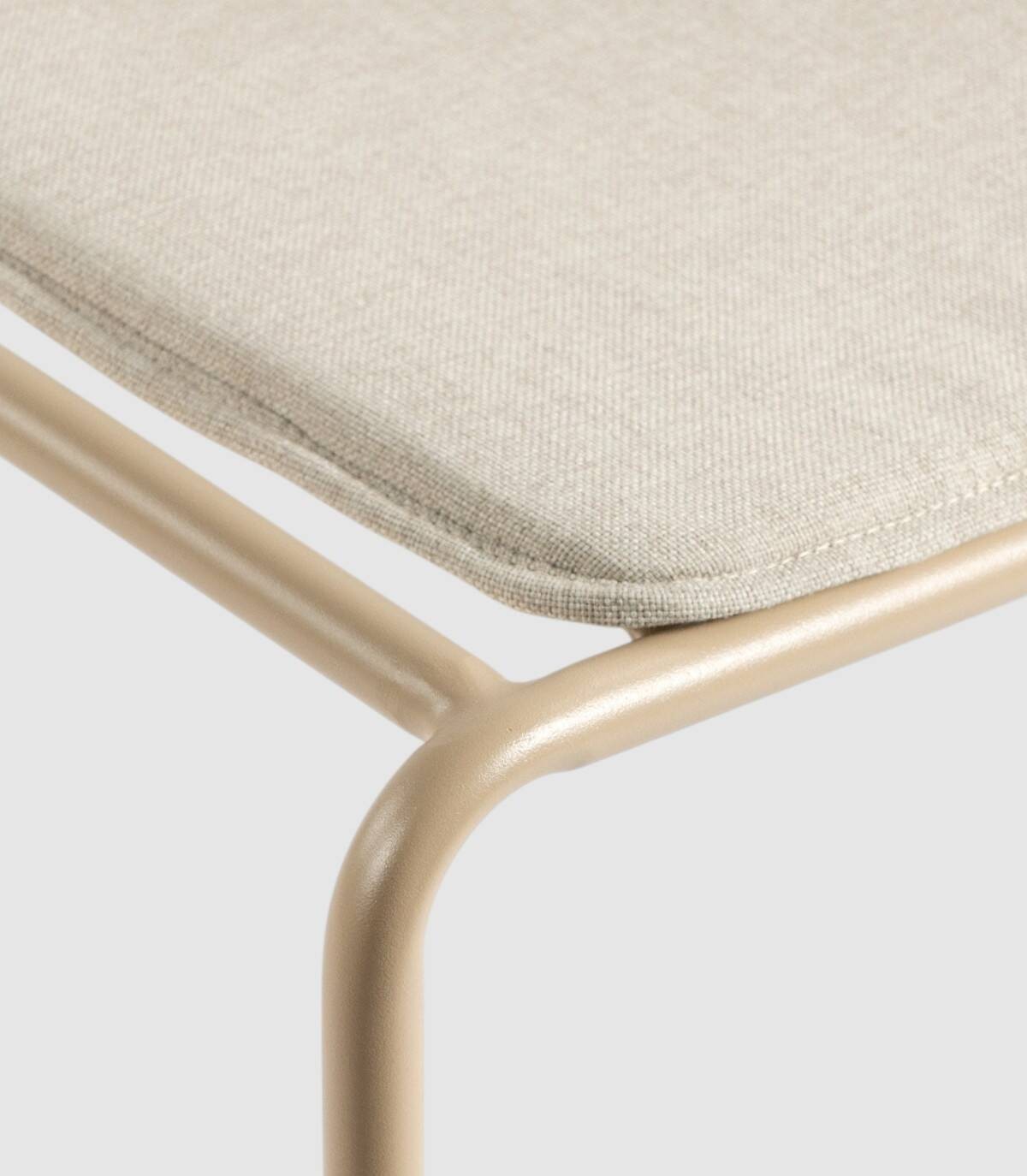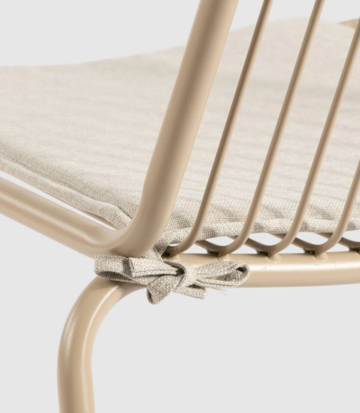 Read moreShow lessHet bestaat uit een rugleuning, zitting en poten van metaal, geverfd in dezelfde kleur met een ontwerp van verticale staven, en is voorzien van een kussen.