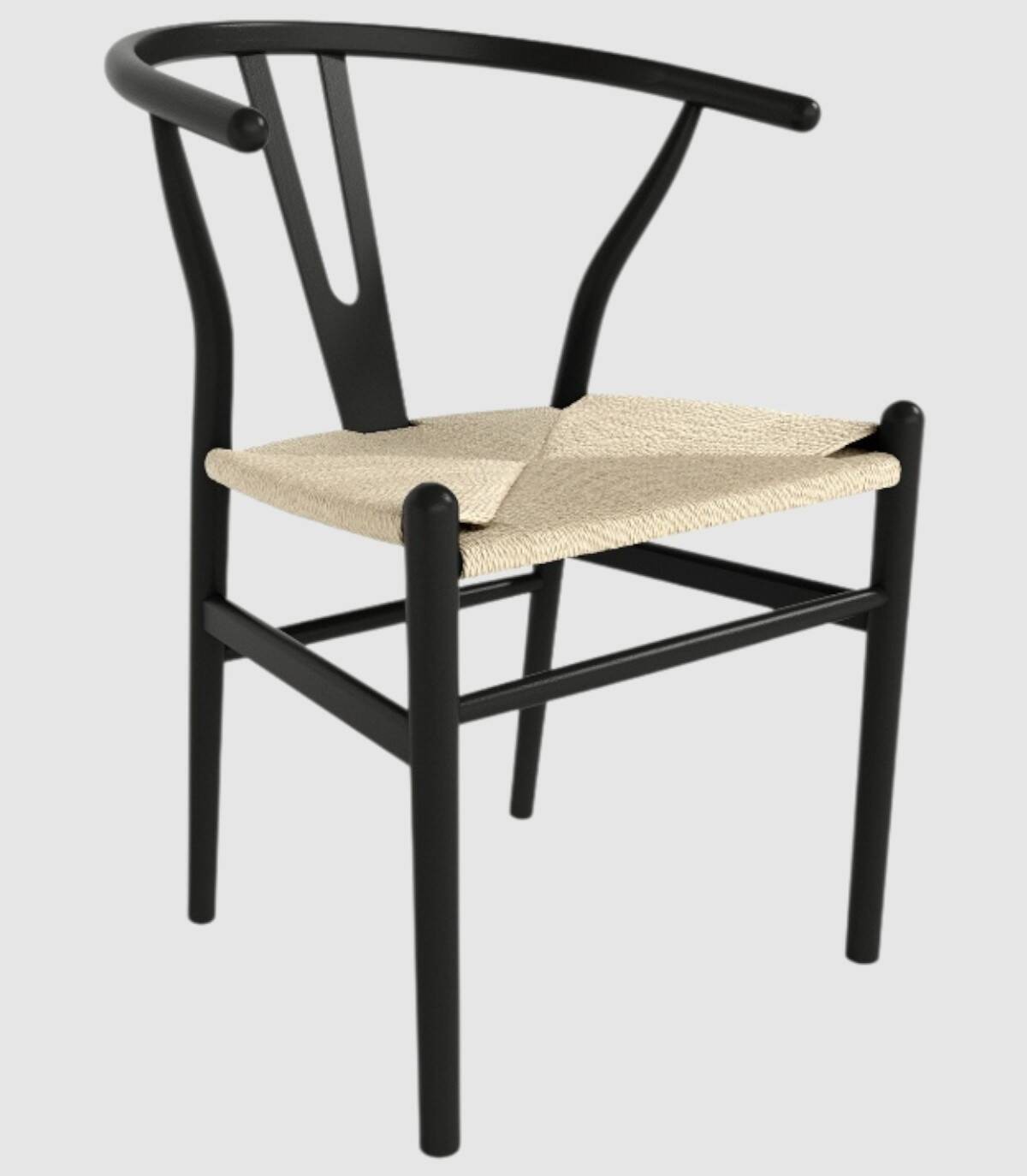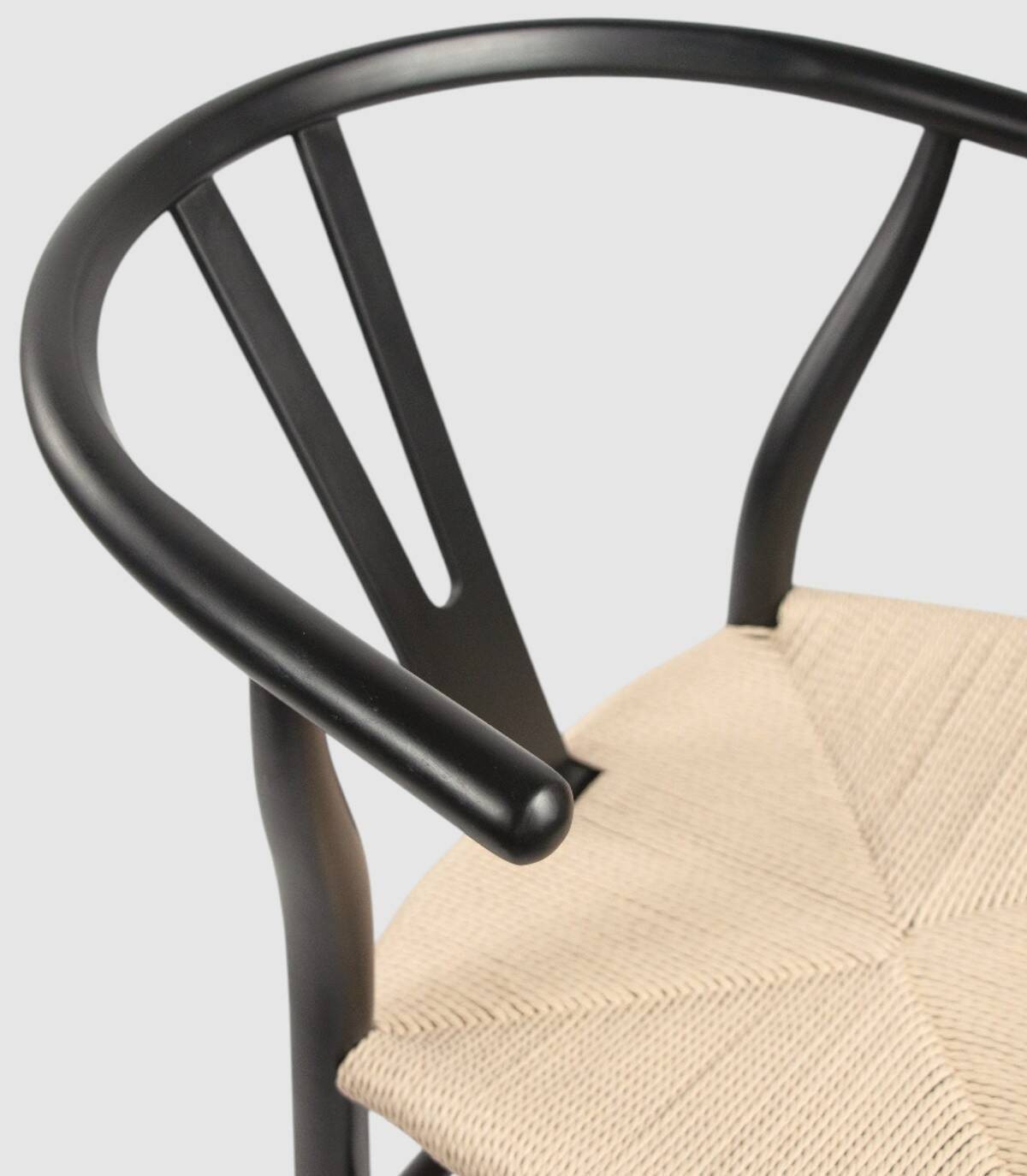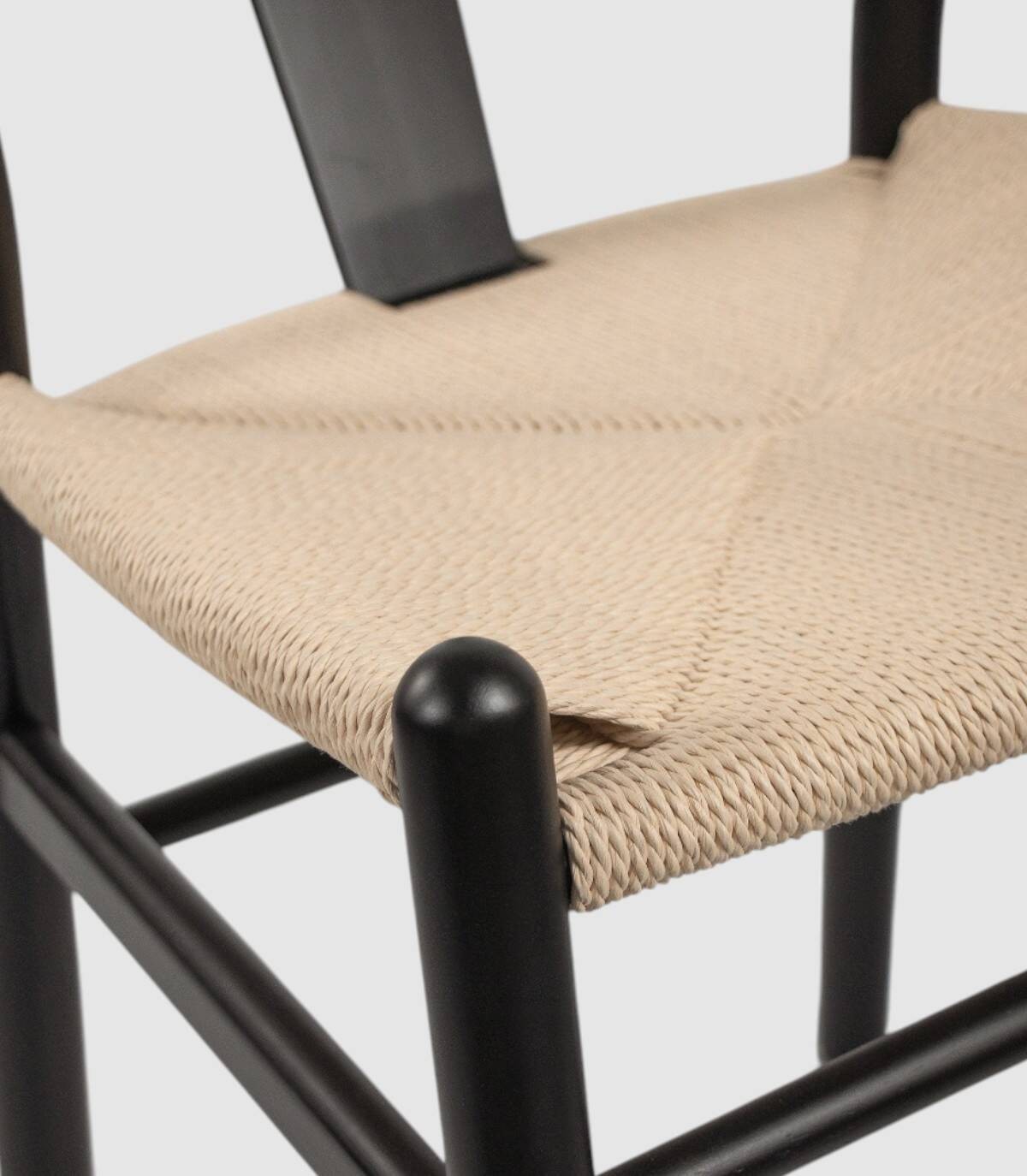 Read moreShow lessHet bestaat uit een rugleuning, zwarte houten poten en een zitting van naturel touw.
